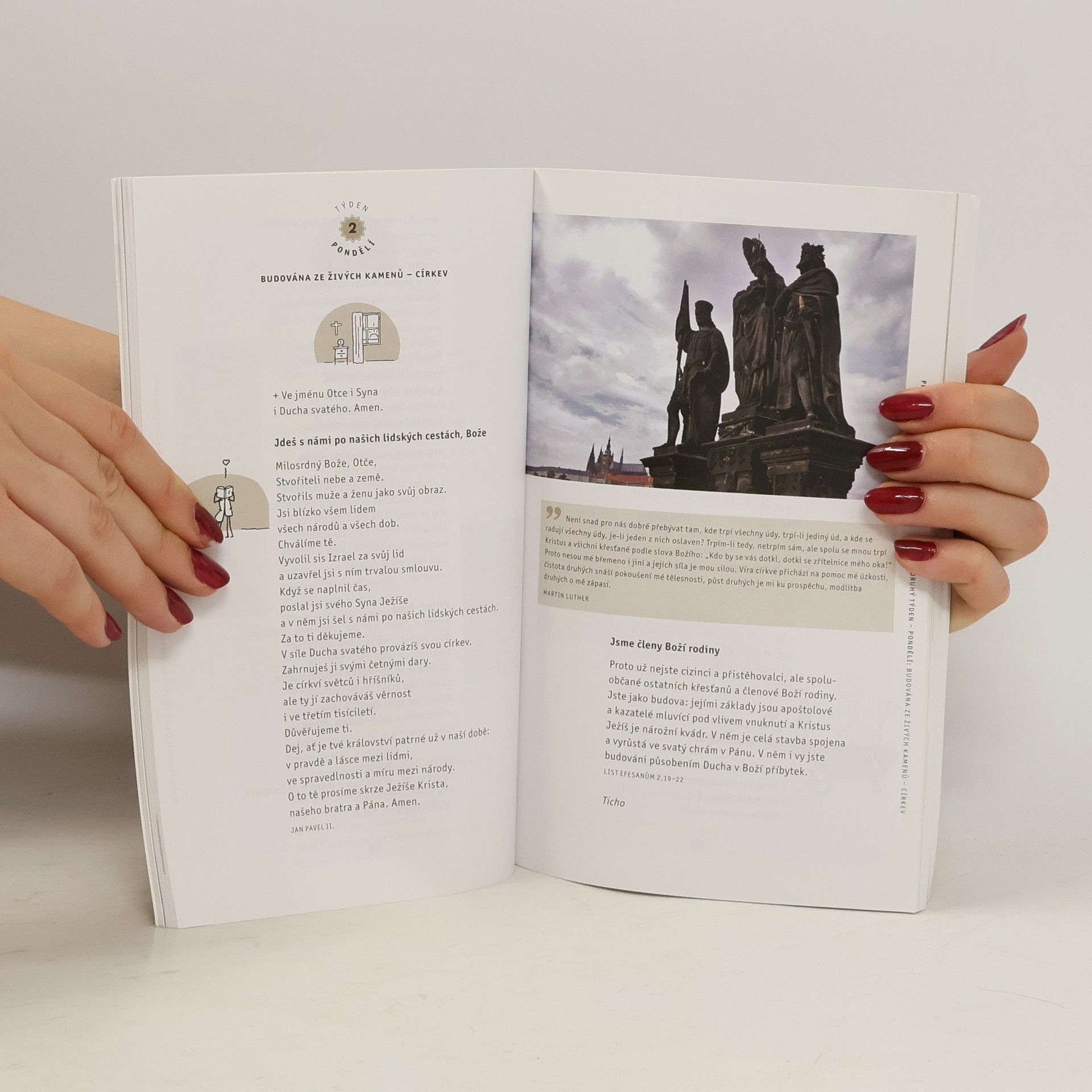 Staré i nové modlitby – z Bible, od velkých mistrů duchovního života i od našich současníků. První část knížky tvoří ranní a večerní modlitby, rozdělené do dvou týdnů. V druhé části jsou modlitby k různým příležitostem. Určeno jak pro ty, kdo se chtějí pravidelně modlit, tak pro ty, kdo se učí modlit vlastními slovy.