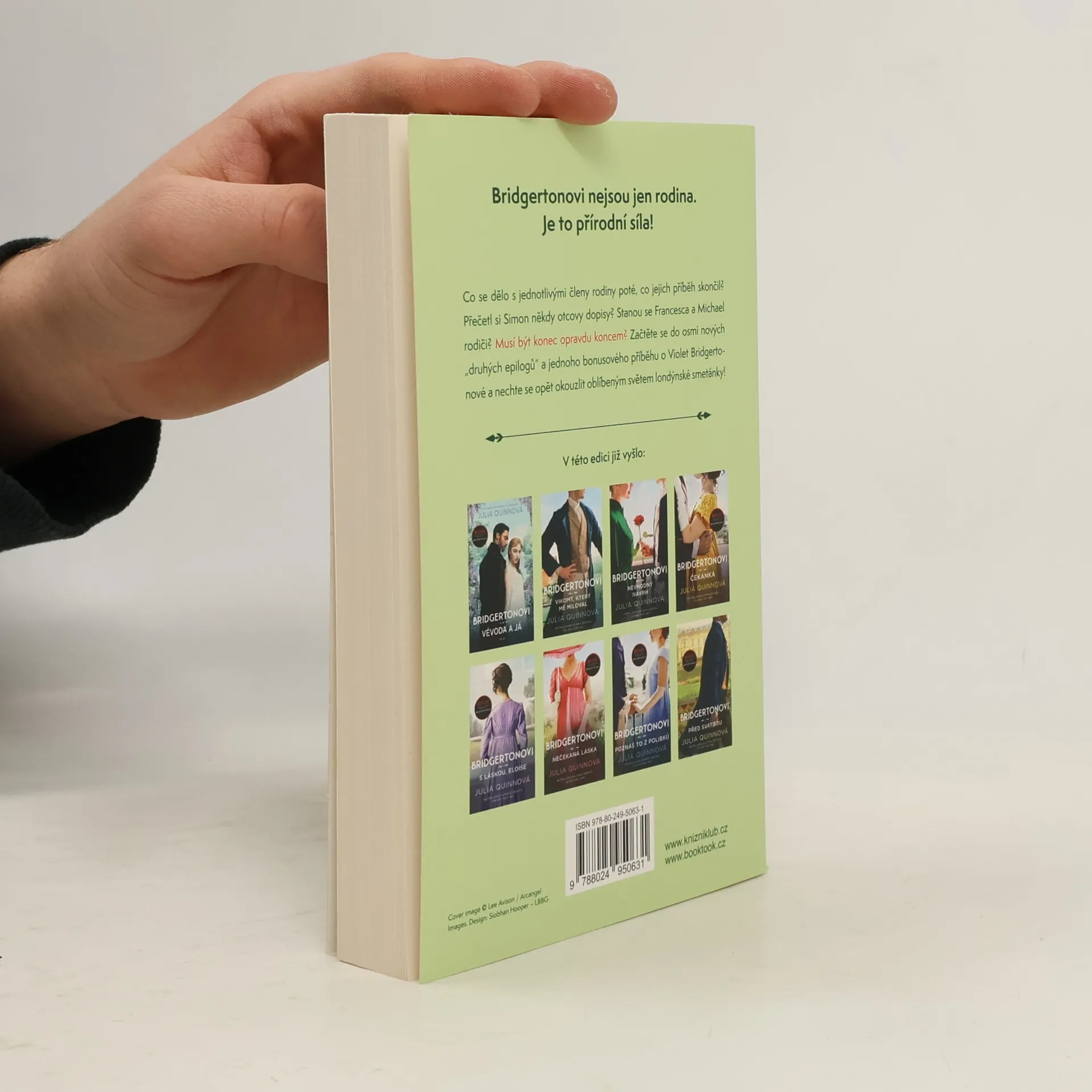 Ale jak to bylo dál? Otázka, kterou si položí snad každý v závěru čtení oblíbené série. A proto Julie Quinnová vyslyšela své věrné čtenáře! Osm sourozenců, různé rodinné vztahy, synové a dcery, neteře a synovci, tlusťoučký corgi a na vše dohlížející matka rodu – to jsou Bridgertonovi. Co se tedy dělo dál? Četl někdy Simon dopisy svého otce? Stanou se Francesca a Michael rodiči? Musí být konec opravdu koncem? Osm nových „druhých epilogů“ a jeden bonusový příběh o Violet Bridgertonové vás opět vtáhnou do oblíbeného světa londýnské smetánky. Protože Bridgertonových není nikdy dost!
