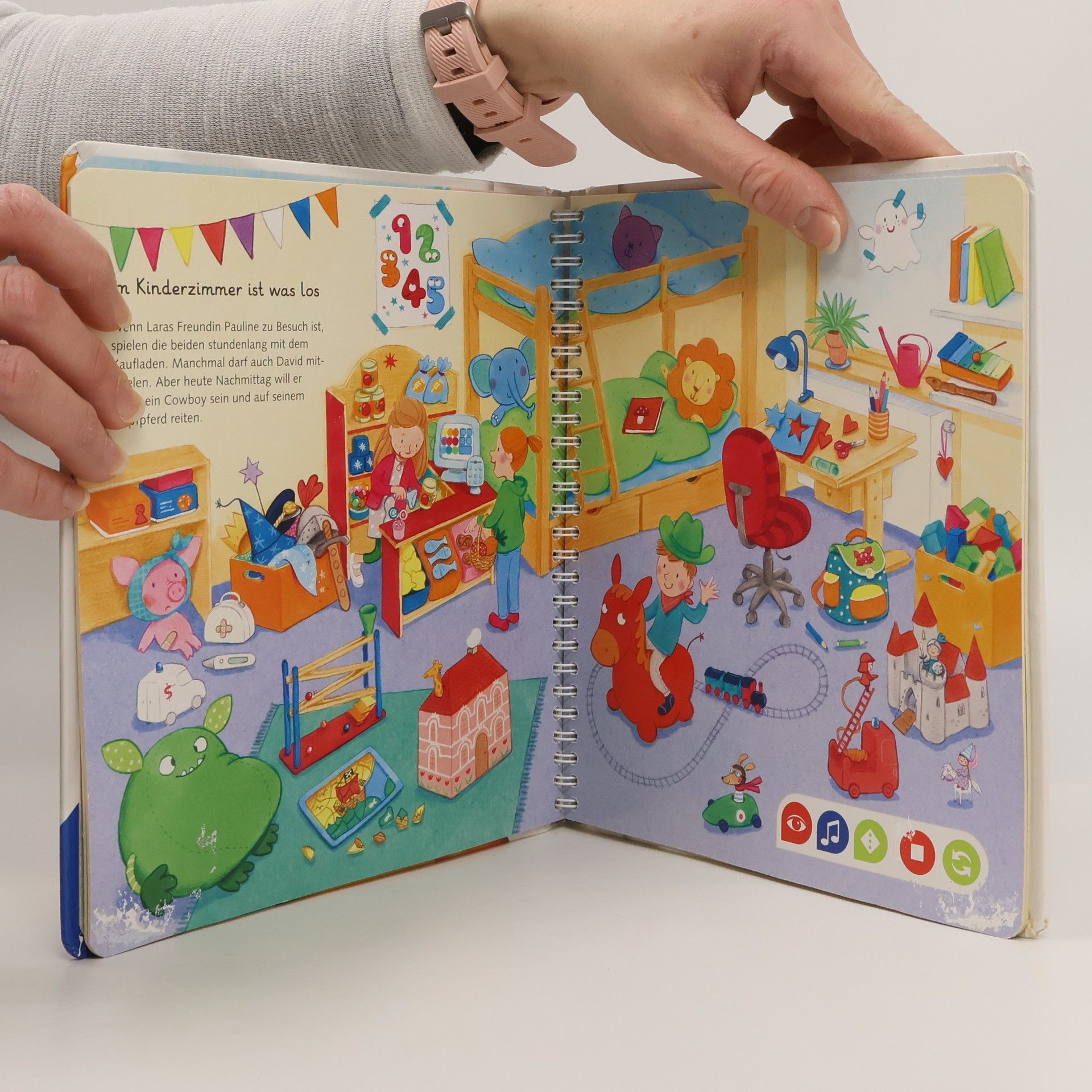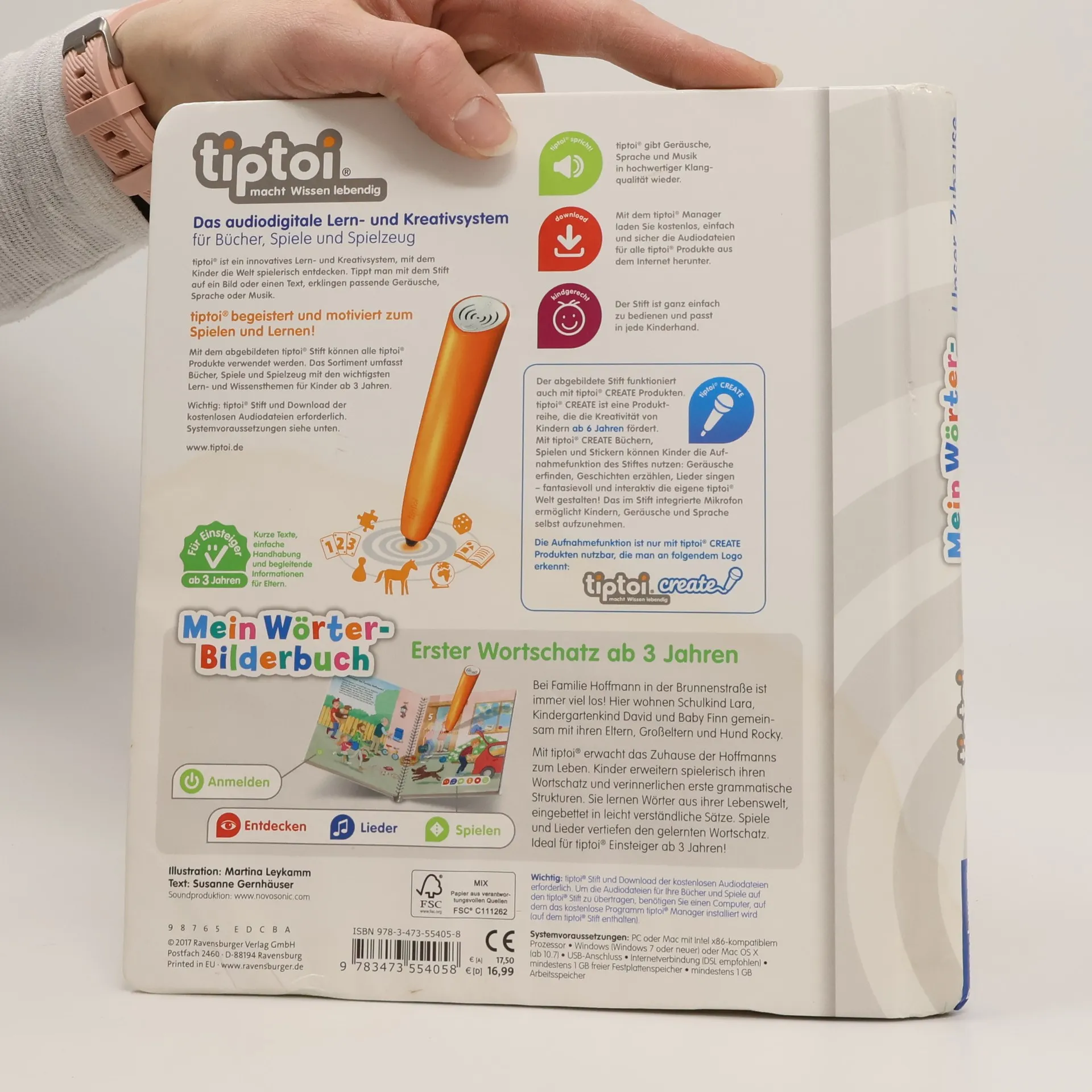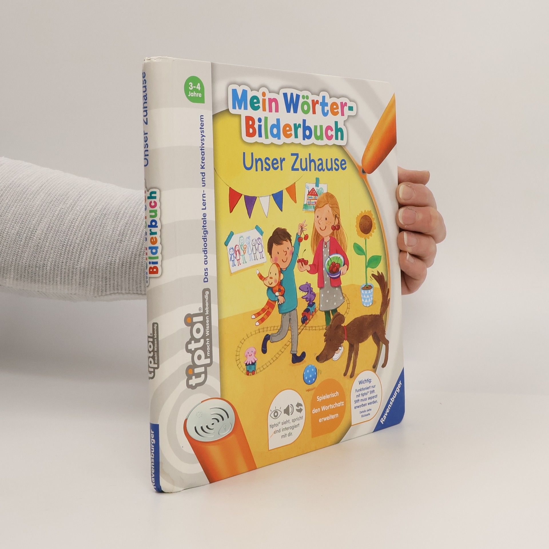 Wörterlernen leicht gemacht: spielerischer Spracherwerb! Willkommen bei uns Zuhause! Hier wohnen Schulkind Lara, Kindergartenkind David und Baby Finn gemeinsam mit ihren Eltern, Großeltern und Hund Rocky. Mit tiptoi erwacht das Zuhause der Hoffmanns zum Leben. Was gibt es in der Küche zu entdecken? Welche Farben hat das Spielzeug? Was macht man vor dem Zubettgehen? Kinder erweitern spielerisch ihren Wortschatz und verinnerlichen erste grammatische Strukturen. Spiele und Lieder vertiefen den gelernten Wortschatz. Mit der Reihe tiptoi Mein Wörter-Bilderbuch bauen Kinder spielerisch ihren Wortschatz auf und erweitern diesen selbstständig. Die kurzen, leicht verständlichen Texte eignen sich ideal für Kinder ab 3 Jahren. Jedes Buch zeigt den Kindern bekannte Szenen und Situationen und vermittelt viele vertraute Begriffe aus dem direkten Umfeld und der Erfahrungswelt der Kinder. Überall gibt es spannende Sätze, zahlreiche Dialoge und lustige Geräusche zu entdecken. Dabei sind die einzelnen Begriffe in ganze Sätze eingebunden, um den Kindern erste grammatische Strukturen zu vermitteln. In jedem Buch wird das Gelernte durch kindgerechte und abwechslungsreiche Spiele mit Lösungskontrolle abgefragt und vertieft. Neukomponierte Lieder und liebevolle Geschichten motivieren zum spielerischen Wörterlernen. tiptoi-Stift nicht enthalten. Muss separat erworben werden.
