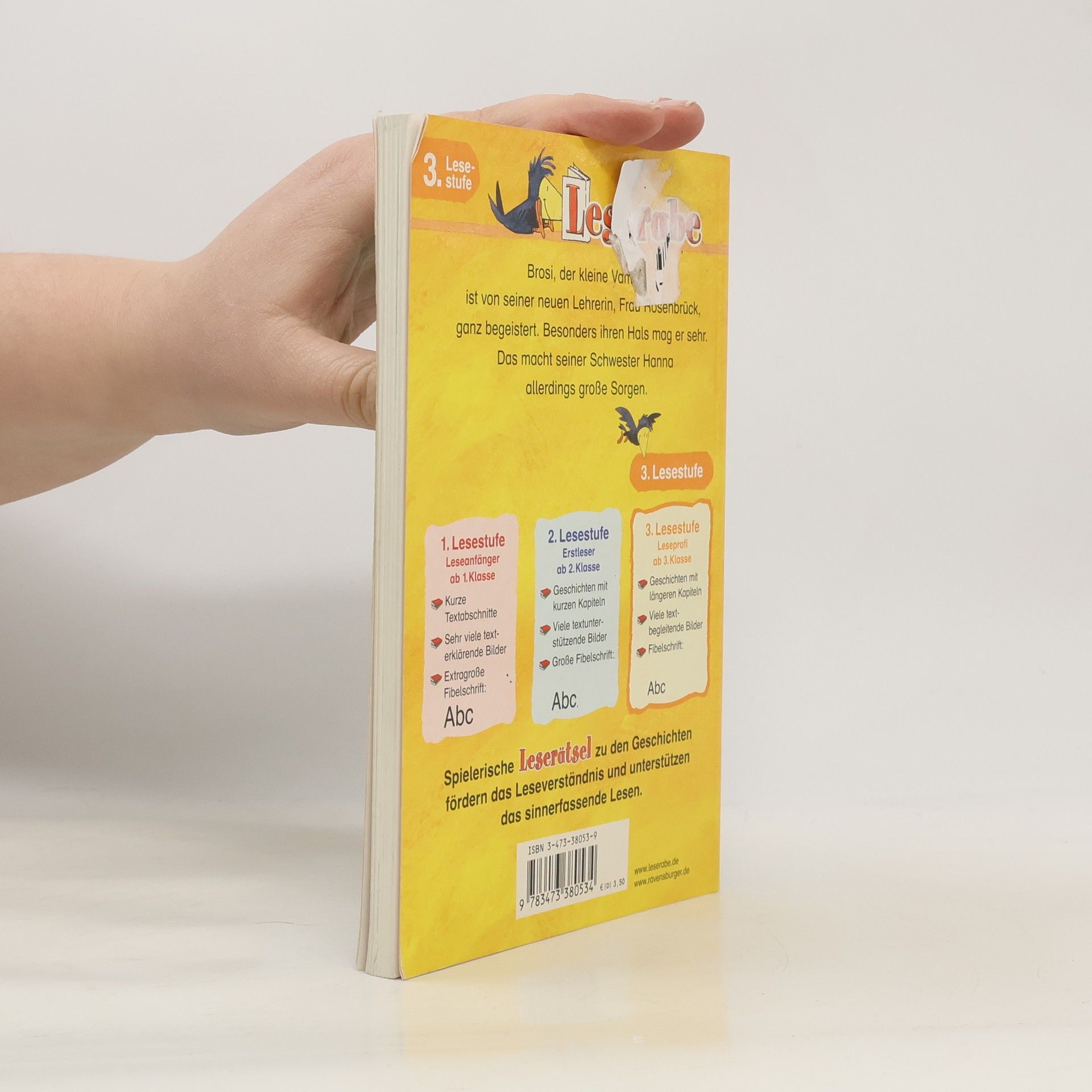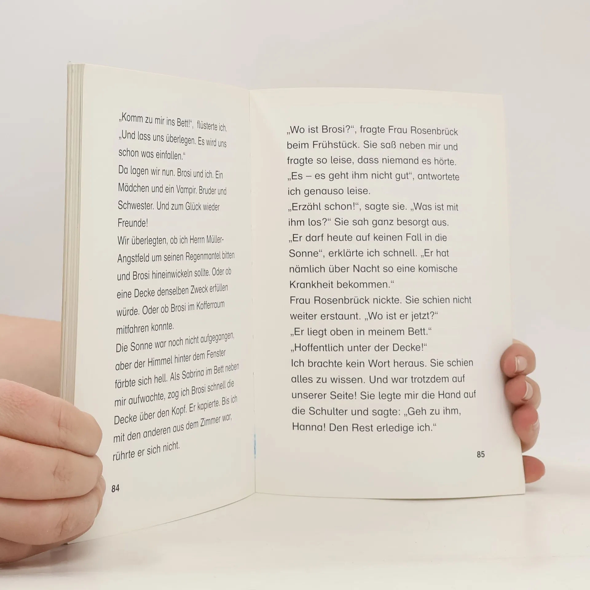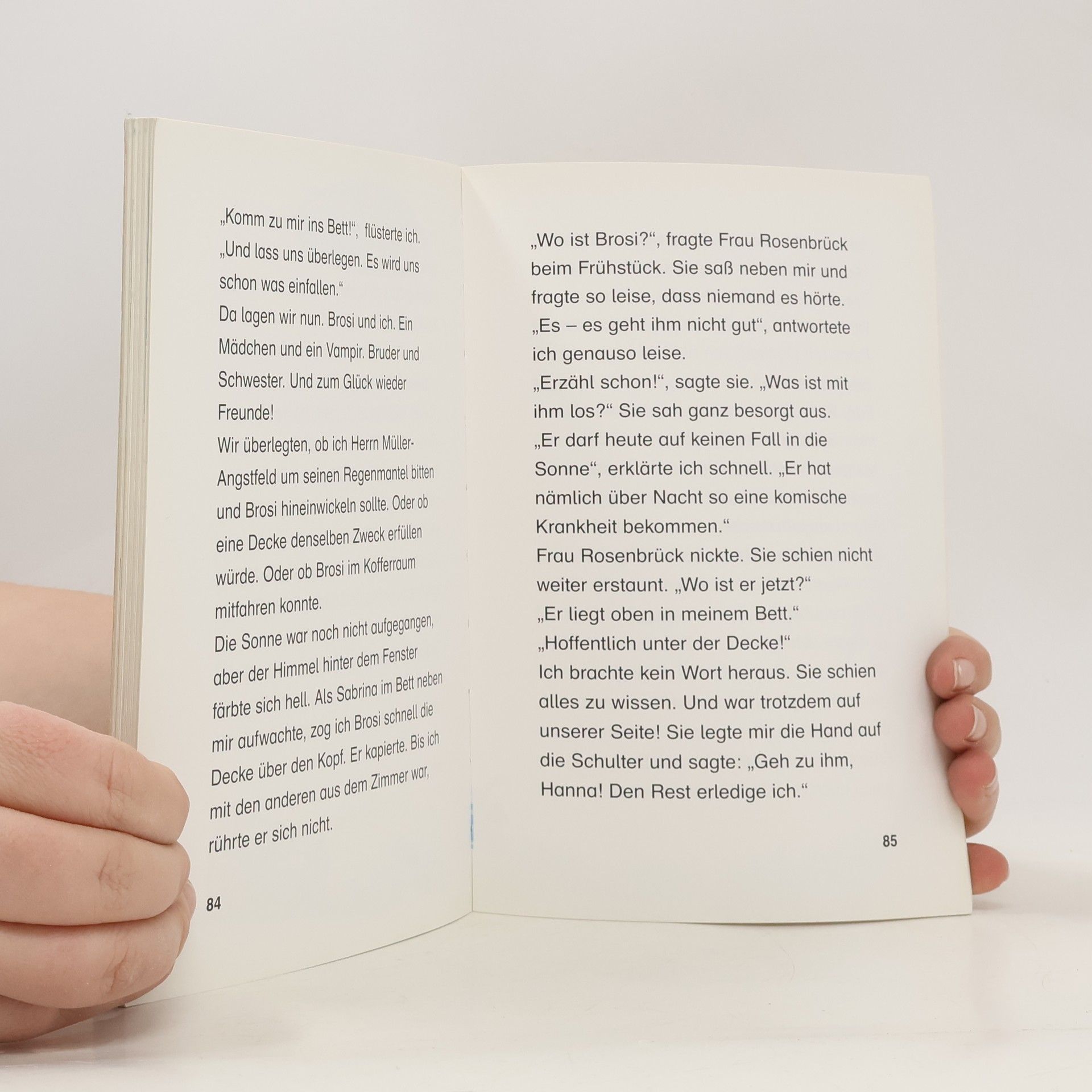 Dem kleinen Vampir Brosi ist so langweilig! Er hat es satt immer nur zu Hause zu sitzen und beschließt, ab sofort in die Schule zu gehen. Von seiner Lehrerin ist er ganz begeistert, doch Frau Rosenbrück muss sich sehr über ihren neuen, etwas blässlichen Schüler wundern.