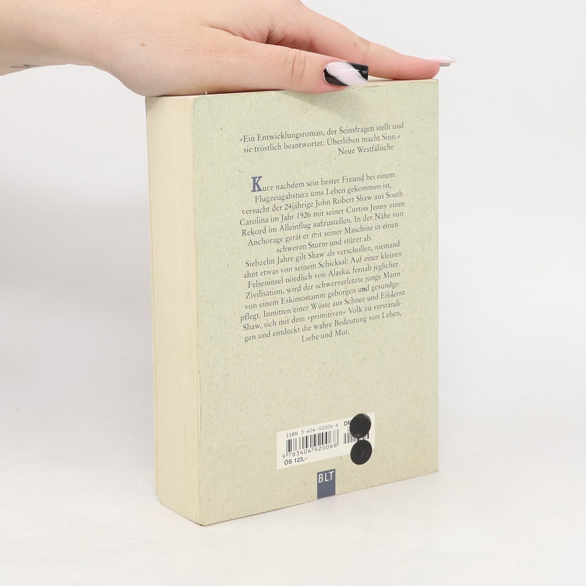 Beim Versuch, im Jahr 1926 einen neuen Rekord im Alleinflug aufzustellen, schafft es John Robert Shaw bis Alaska. Doch dann gerät er in einen Sturm und gilt fortan als verschollen. Völlig unvermutet wird John 17 Jahre später gefunden – 17 Jahre, in denen er mit den Inuit gelebt hat, in einer Einöde aus ewigem Eis und Schnee. Nun sieht er sich gezwungen, zum zweiten Mal ein völlig neues Leben zu beginnen … Ein bewegender Roman über die Macht der Liebe und den Mut, den eigenen Träumen und Passionen zu folgen.