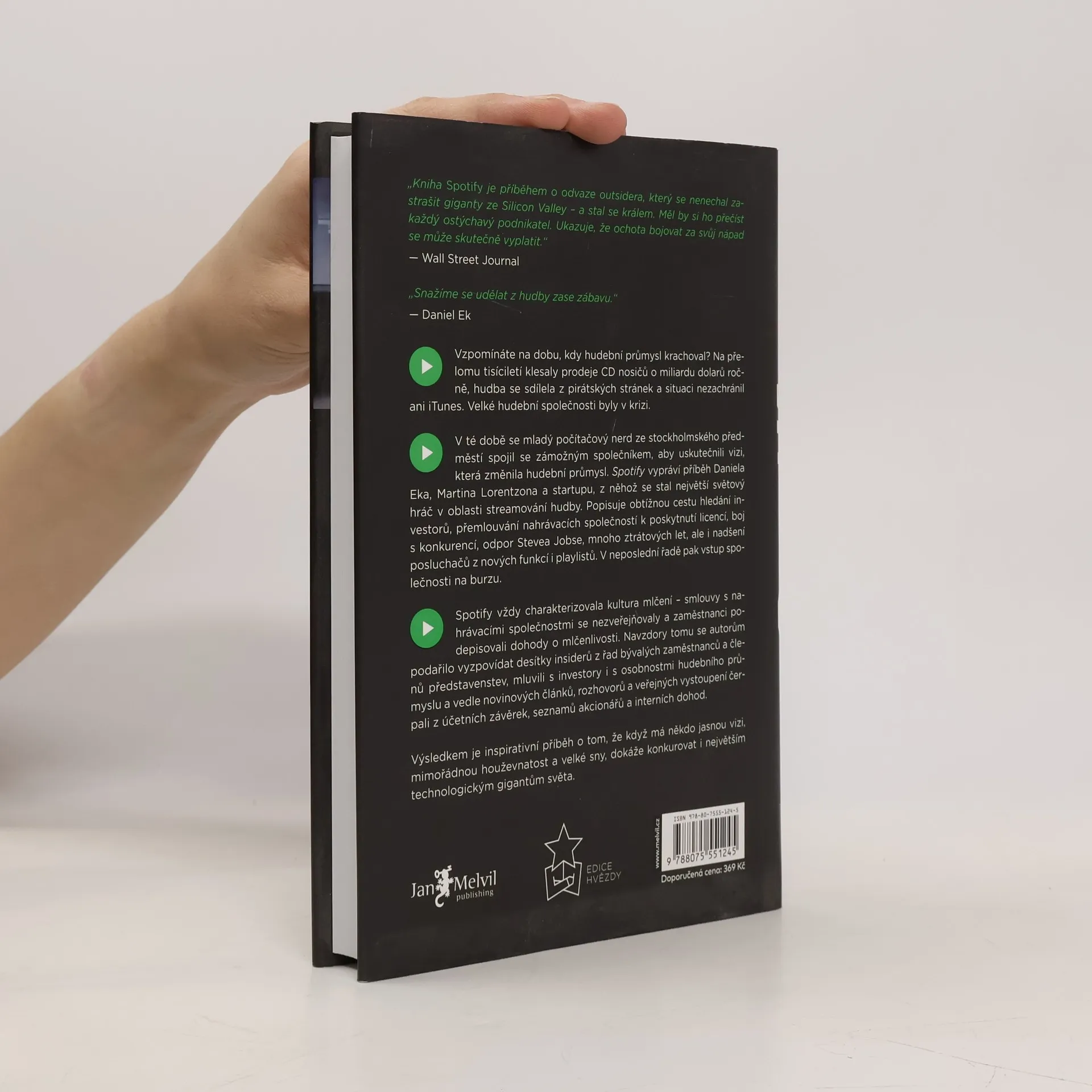 Příběh krále audia, který porazil Apple, Google a Amazon. Na přelomu tisíciletí se hudební průmysl potýkal s krizí, kdy prodeje CD klesaly a pirátské stránky dominovaly. Velké hudební společnosti se snažily najít řešení, ale ani iTunes situaci nezachránily. V této době se mladý počítačový nadšenec ze Stockholmu spojil se zámožným partnerem a vytvořil vizi, která změnila hudební průmysl. Příběh Daniela Eka, Martina Lorentzona a jejich startupu, který se stal lídrem v oblasti streamování hudby, zachycuje složitou cestu hledání investorů, vyjednávání s nahrávacími společnostmi, boj s konkurencí a překonávání odporu Stevea Jobse. I přes mnoho ztrátových let a výzev se Spotify stalo oblíbeným mezi posluchači díky novým funkcím a playlistům, a nakonec vstoupilo na burzu. Kultura mlčení, která provázela Spotify, zahrnovala tajné smlouvy s nahrávacími společnostmi a dohody o mlčenlivosti mezi zaměstnanci. Autoři se však podařilo získat informace od desítek insiderů, včetně bývalých zaměstnanců a členů představenstev, a čerpali z různých zdrojů, včetně účetních závěrek a interních dohod. Výsledkem je inspirativní příběh o tom, jak jasná vize, houževnatost a velké sny mohou konkurovat největším technologickým gigantům.