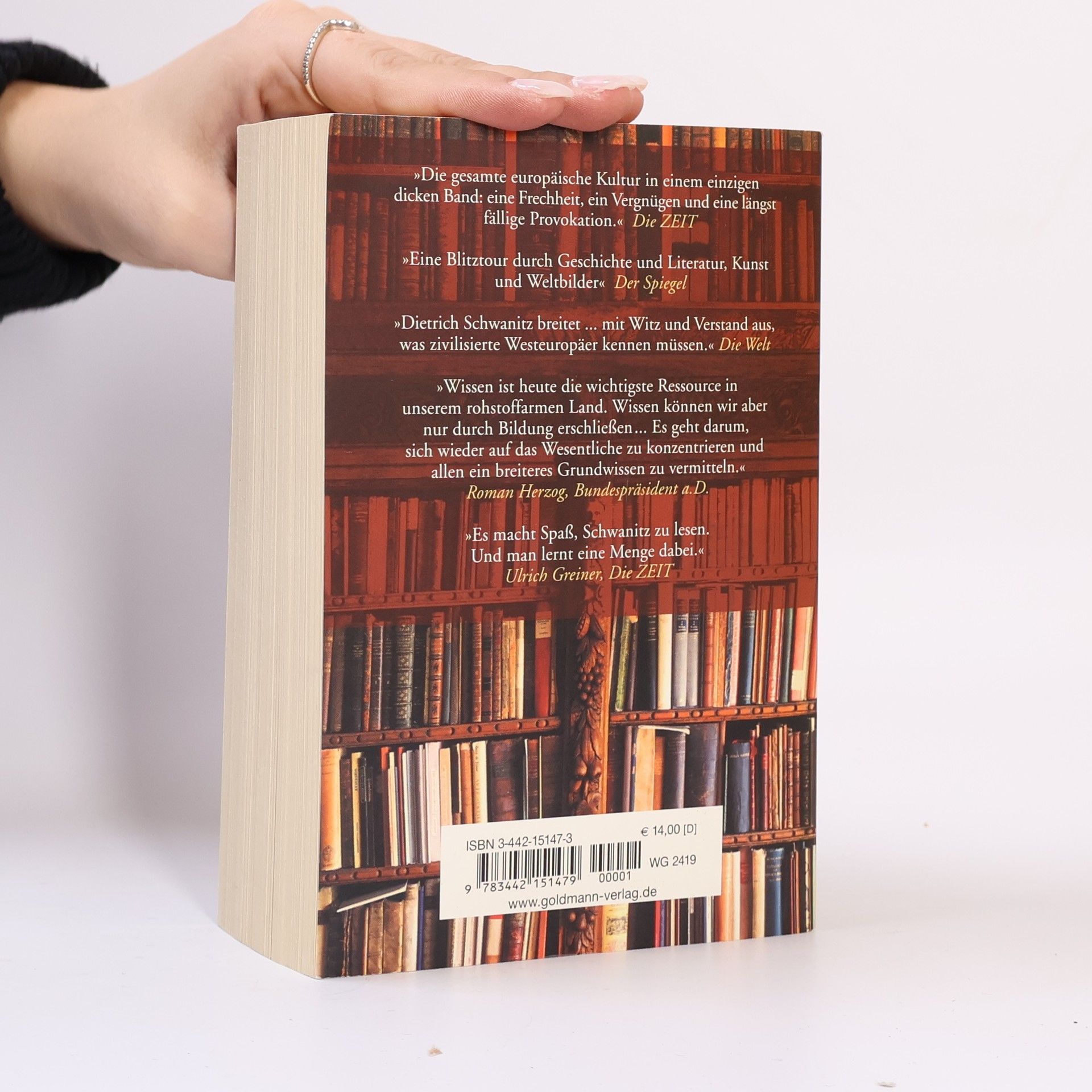 Unser Wissen ist im Umbruch, unser Bildungssystem in der Krise, der Ruf nach einem Kanon wird immer lauter. Dieses Handbuch bietet umfassende Neuorientierung hinsichtlich der Kernbestände unserer Kultur. Im ersten Teil „Wissen“ präsentiert Dietrich Schwanitz „alles, was man wissen muß“, um das „Bürgerrecht“ im Land der Bildung zu erwerben. Im zweiten Teil „Können“ geleitet Schwanitz den Leser unter anderem durch das „Haus der Sprache“, die Welt des Buches und der Schrift und bietet inspirierende Länderkunde. Eine Zeittafel, informative Kürzestfassungen von „Büchern, die die Welt verändert haben“, Tipps zum Weiterlesen und ein ausführliches Namenregister erhöhen den Gebrauchswert dieses Kompendiums.