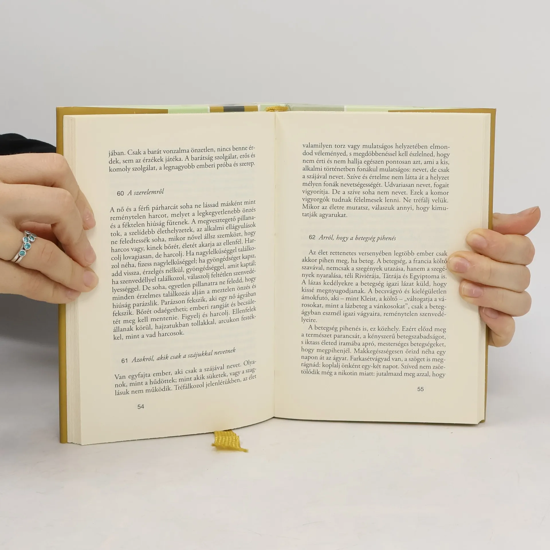 Olyasféle ez a könyv, mint a régi füves könyvek, amelyek egyszerű példákkal akartak felelni a kérdésekre, mit is kell tenni, ha valakinek a szíve fáj, vagy elhagyta az Isten. Nem eszmékről és hősökről beszél, hanem arról, aminek köze van az emberhez. Írója tanulva akarja tanítani embertársait, tanulva a régiektől, a könyvekből, azokon keresztül az emberi szívből, az égi jelekből. Elemi ismereteket kíván közvetíteni az emberi élet alapigazságait illetően. Márai Sándor 1943-ban írott művét Epiktétosznak, kedves Marcus Aureliusának, Montaigne-nak és valamennyi sztoikusnak ajánlja, akiktől a hatalomról, a jókedvről, a félelemmentes életről tanult.