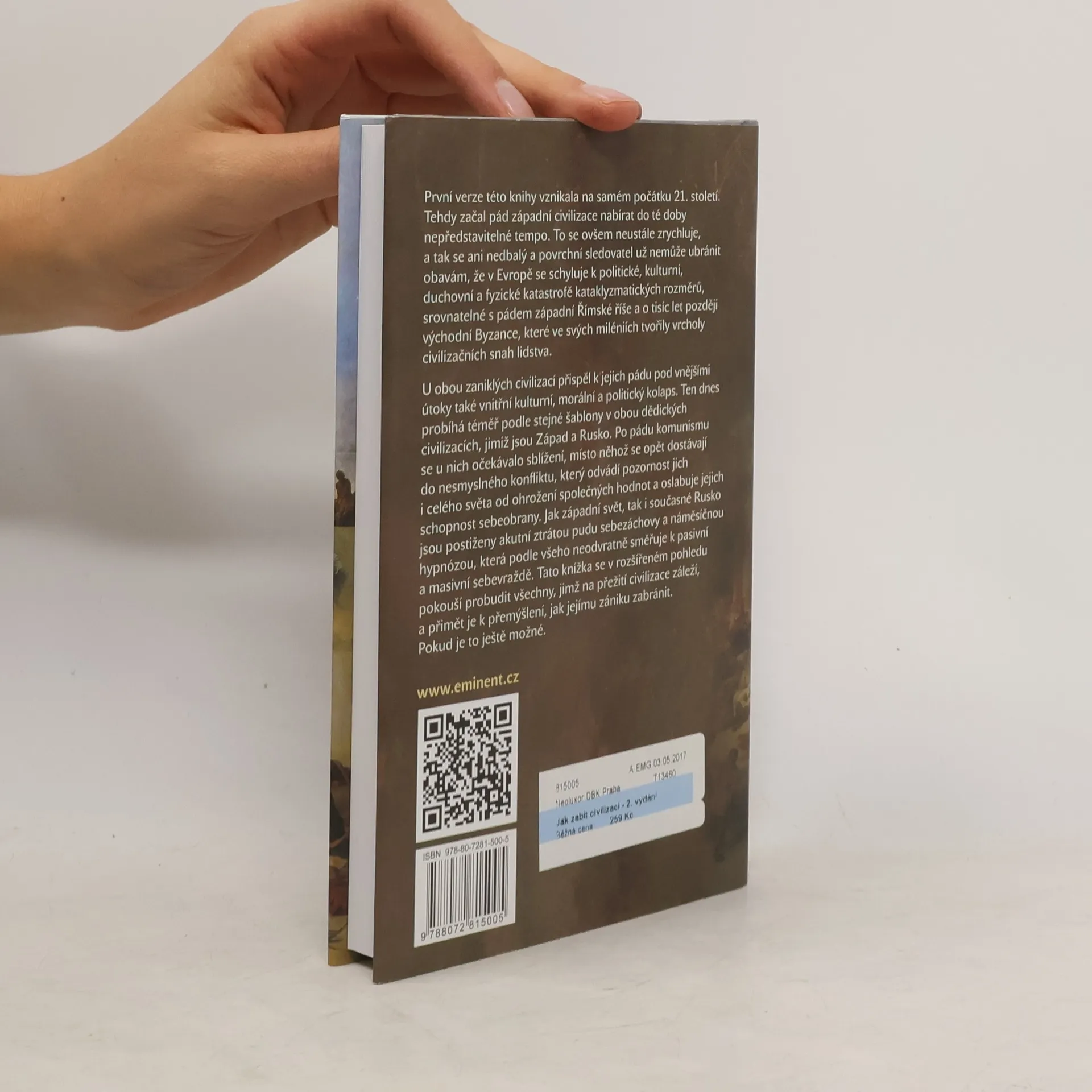 První verze této knihy vznikala na samém počátku 21. století. V té době začal pád západní civilizace nabírat do té doby nepředstavitelné tempo. To se ovšem neustále zrychluje, a tak se ani nedbalý a povrchní sledovatel už nemůže ubránit obavám, že v Evropě se schyluje k politické, kulturní, duchovní a fyzické katastrofě kataklyzmatických rozměrů, srovnatelné s pádem západní Římské říše a o tisíc let později východní Byzance, které ve svých miléniích tvořily vrcholy civilizačních snah lidstva. U obou zaniklých civilizací přispěl k jejich pádu pod vnějšími útoky také vnitřní kulturní, morální a politický kolaps. Ten dnes probíhá téměř podle stejné šablony v obou dědických civilizacích, jimiž jsou Západ a Rusko. Po pádu komunismu se u nich očekávalo sblížení, místo něhož se opět dostávají do nesmyslného konfliktu, který odvádí pozornost jich i celého světa od ohrožení společných hodnot a oslabuje jejich schopnost sebeobrany. Jak západní svět, tak i současné Rusko jsou postiženy akutní ztrátou pudu sebezáchovy a náměsíčnou hypnózou, která podle všeho neodvratně směřuje k pasivní a masivní sebevraždě. Tato knížka se v rozšířeném pohledu pokouší probudit všechny, jimž na přežití civilizace záleží, a přimět je k přemýšlení, jak jejímu zániku zabránit. Pokud je to ještě možné.