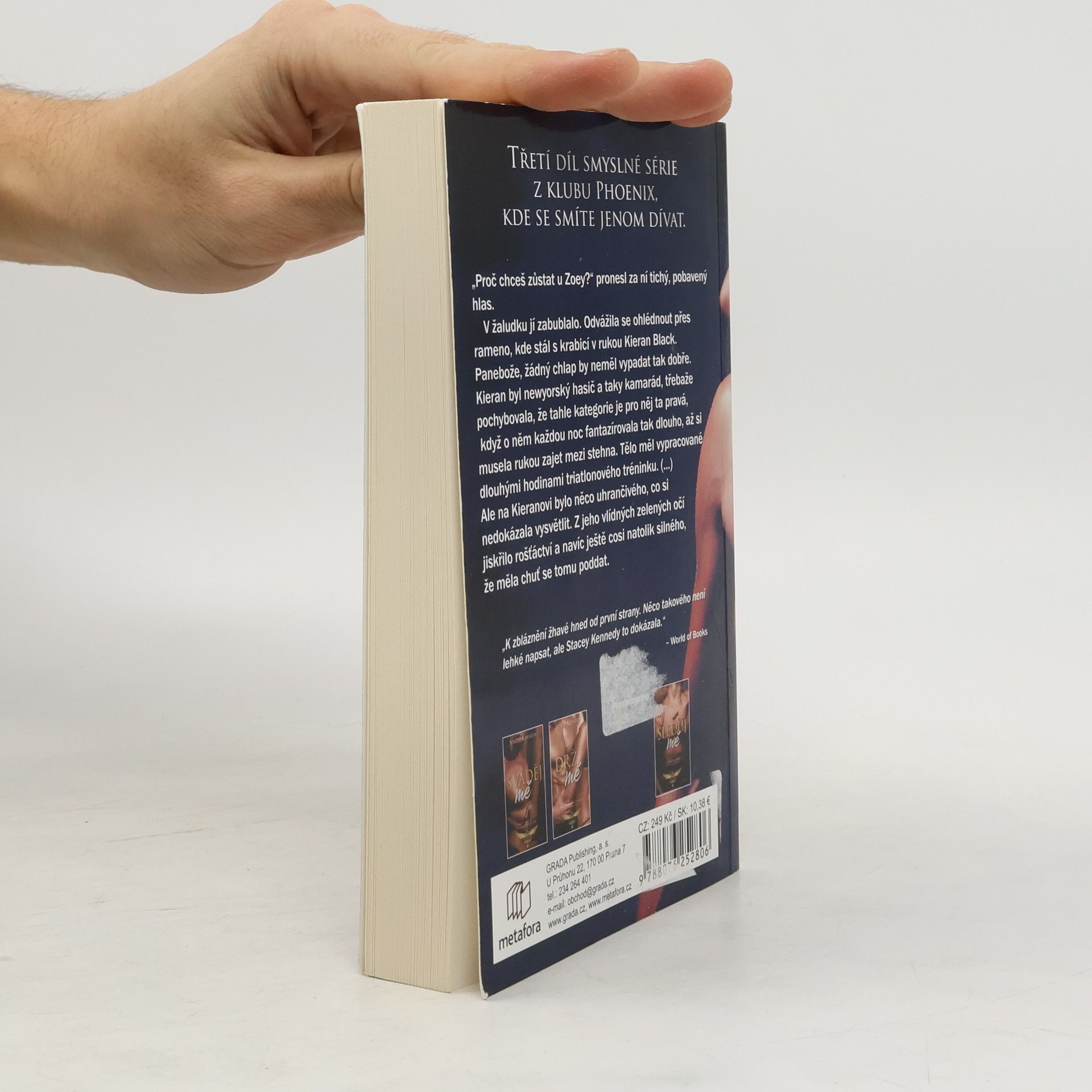 Mladá reportérka Hazel Roseová má před sebou nový úkol – najít maskovaného muže z fotografie pořízené v erotickém klubu Phoenix a pokusit se s ním udělat rozhovor. V čem je háček? V tom, že Hazel už ví jak o klubu, tak o muži ukrytém za zlatou maskou. Jmenuje se Kieran Black a je to její sexy spolubydlící. Hazel za žádnou cenu nechce odhalit světu jeho identitu, stejně jako se neodvažuje s ním probírat jeho tajnou vášeň. Stačí totiž jediný jeho úsměv, aby zrudla jako rak. Kieran preferuje sex tvrdý a vztahy krátké. Jako dítě rozvedených rodičů se nikdy nechtěl vázat. Najednou se ale dostal do věku, kdy se jeho přátelé žení, a on si začíná uvědomovat, že jeho život je vlastně prázdný. Na svatbě jejich společných přátel Rhyse a Zoey konečně svou nenápadnou spolubydlící trochu poznává. A když mu Hazel vylíčí trable s bývalým přítelem, Kieran jí nabídne dohodu. Hazel dobře ví, že jejich žhavý románek nikdy neměl přerůst v nic vážnějšího. Brzy však zjistí, že tomuhle neznámému Kieranovi – který v sobě skrývá víc vřelosti, než sám tuší – začíná propadat. Když život do jejich nevázaného vztahu vnese komplikace, oba se musí rozhodnout, zda se dál vydají každý po vlastní ose, nebo se pokusí nechat minulost za zády a vyrazí společnou cestou.