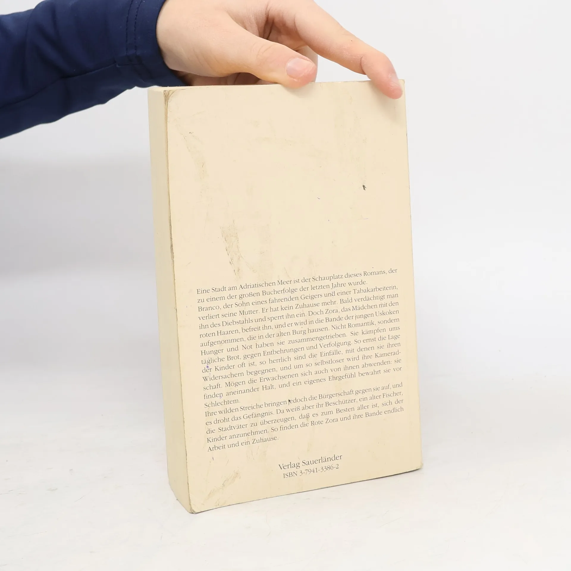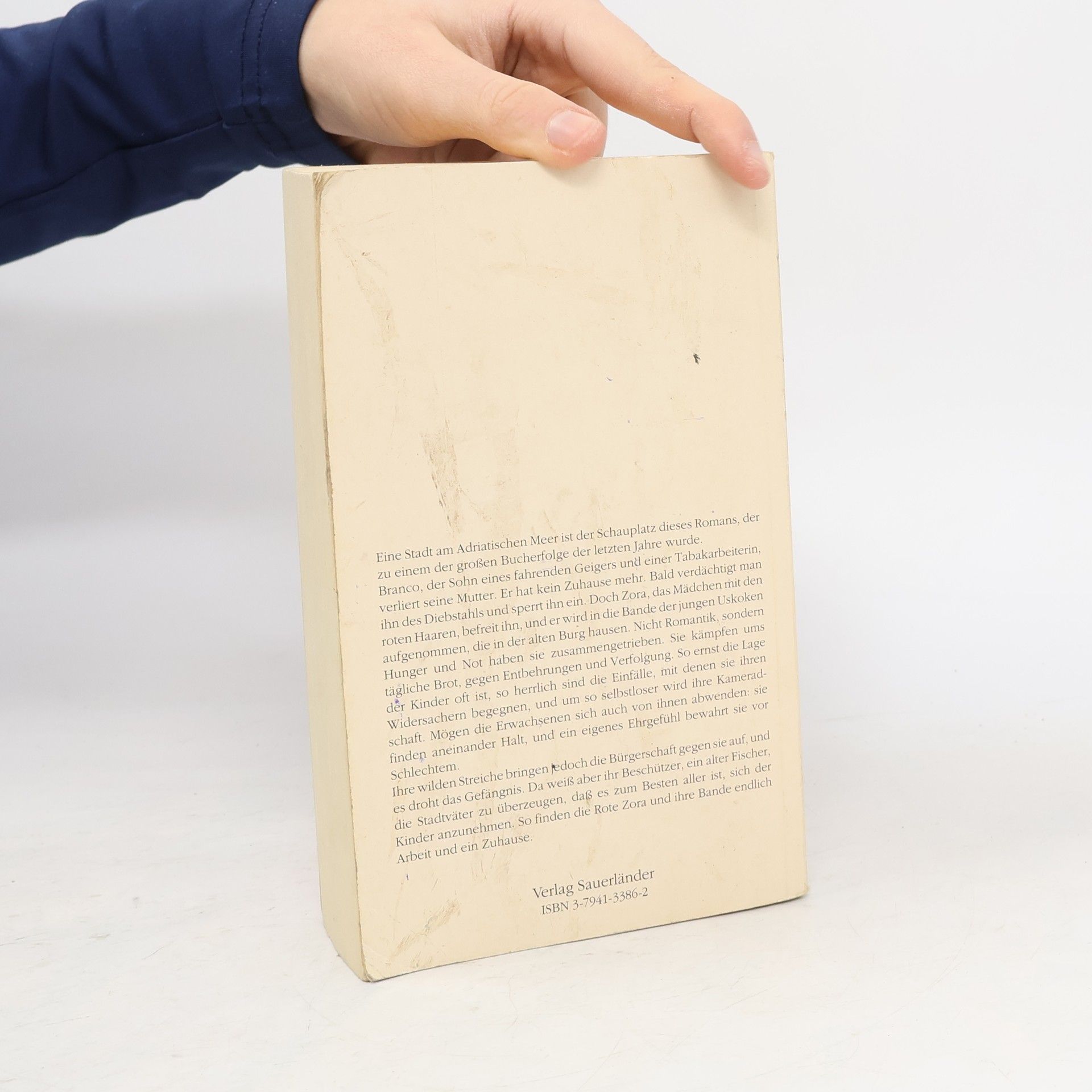 Klappentext: "Eine Stadt am Adriatischen Meer ist Schauplatz dieses Romans, der zu einem der großen Bucherfolge der letzten Jahre wurde. Branco, der sohn eines fahrenden Geigers und einer Tabakarbeiterin, verliert seine Mutter. Er hat kein Zuhause mehr. Bald verdächtigt man ihn des Diebstahls und sperrt ihn ein. Doch Zora, das Mädchen mit den roten Haaren, befreit ihn, und er wird in die Bande der jungen Uskoken aufgenommen, die in der alten Burg hausen. Nicht Romantik, sondern Hunger und Not haben sie zusammengetrieben. Sie kämpfen ums tägliche Brot, gegen Entbehrungen und Verfolgung. So ernst die Lage der Kinder oft ist, so herrlich sind die Einfälle, mit denen sie ihren Widersachern begegnen, und um so selbstloser wird ihre Kameradschaft. Mögen die Erwachsenen sich auch von ihnen abwenden: sie finden aneinander Halt, und ein eigenes Ehrgefühl bewahrt sie vor Schlechtem. Ihre wilden Streiche bringen jedoch die Bürgerschaft gegen sie auf, und es droht das Gefängnis. Da weiß aber ihr Beschützer, ein alter Fischer, die Stadtväter zu überzeugen, dass es zum Besten aller ist, sich der Kinder anzunehmen. So finden die Rote Zora und ihre Bande endlcih Arbeit und ein Zuhause."