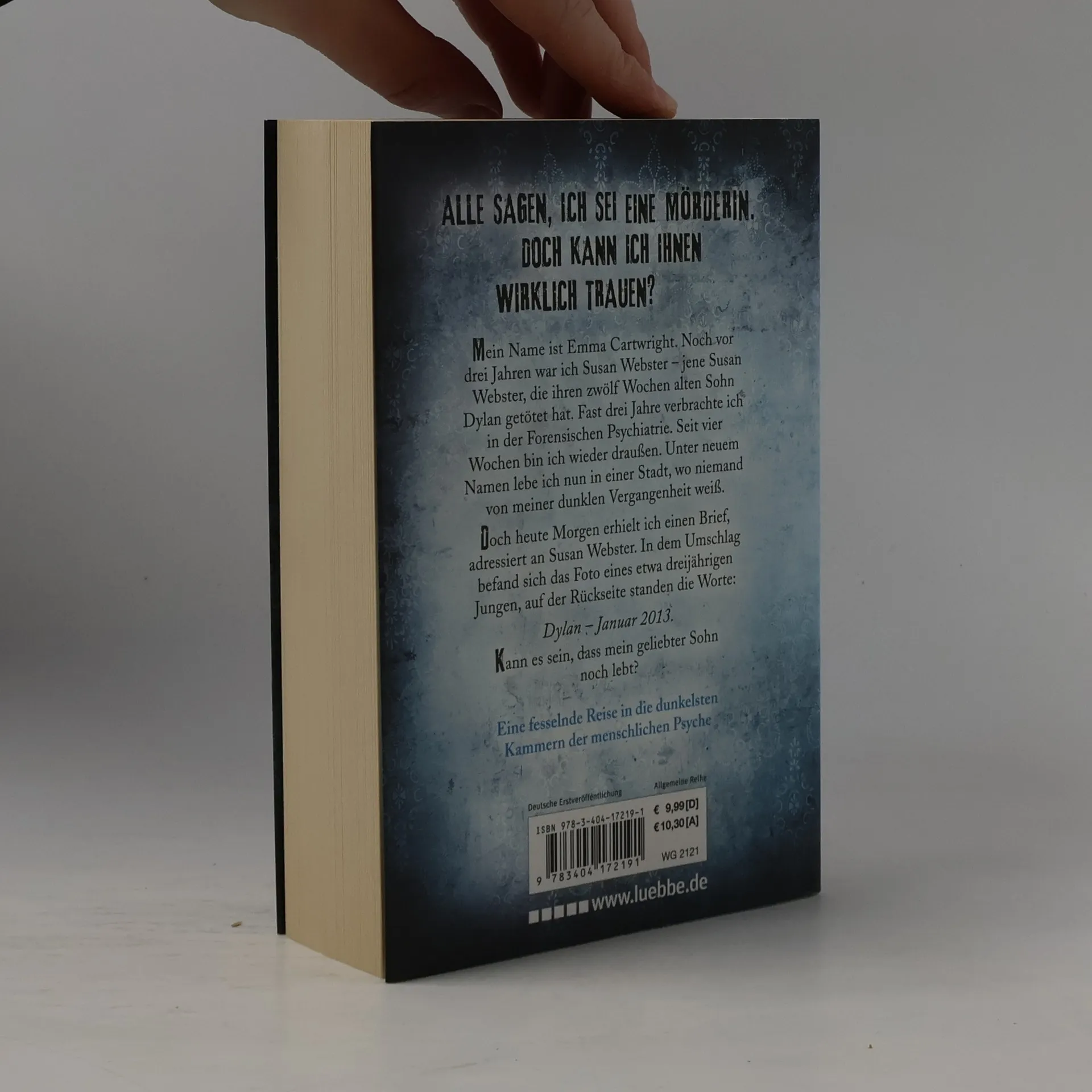 Mein Name ist Emma Cartwright. Noch vor drei Jahren war ich Susan Webster - jene Susan Webster, die ihren zwölf Wochen alten Sohn Dylan getötet hat. Fast drei Jahre verbrachte ich in der Forensischen Psychiatrie. Seit vier Wochen bin ich wieder draußen. Unter neuem Namen lebe ich nun in einer Stadt, wo niemand von meiner dunklen Vergangenheit weiß. Doch heute Morgen erhielt ich einen Brief, adressiert an Susan Webster. In dem Umschlag befand sich das Foto eines etwa dreijährigen Jungen, auf der Rückseite standen die Worte: Dylan - Januar 2013. Kann es sein, dass mein geliebter Sohn noch lebt?
