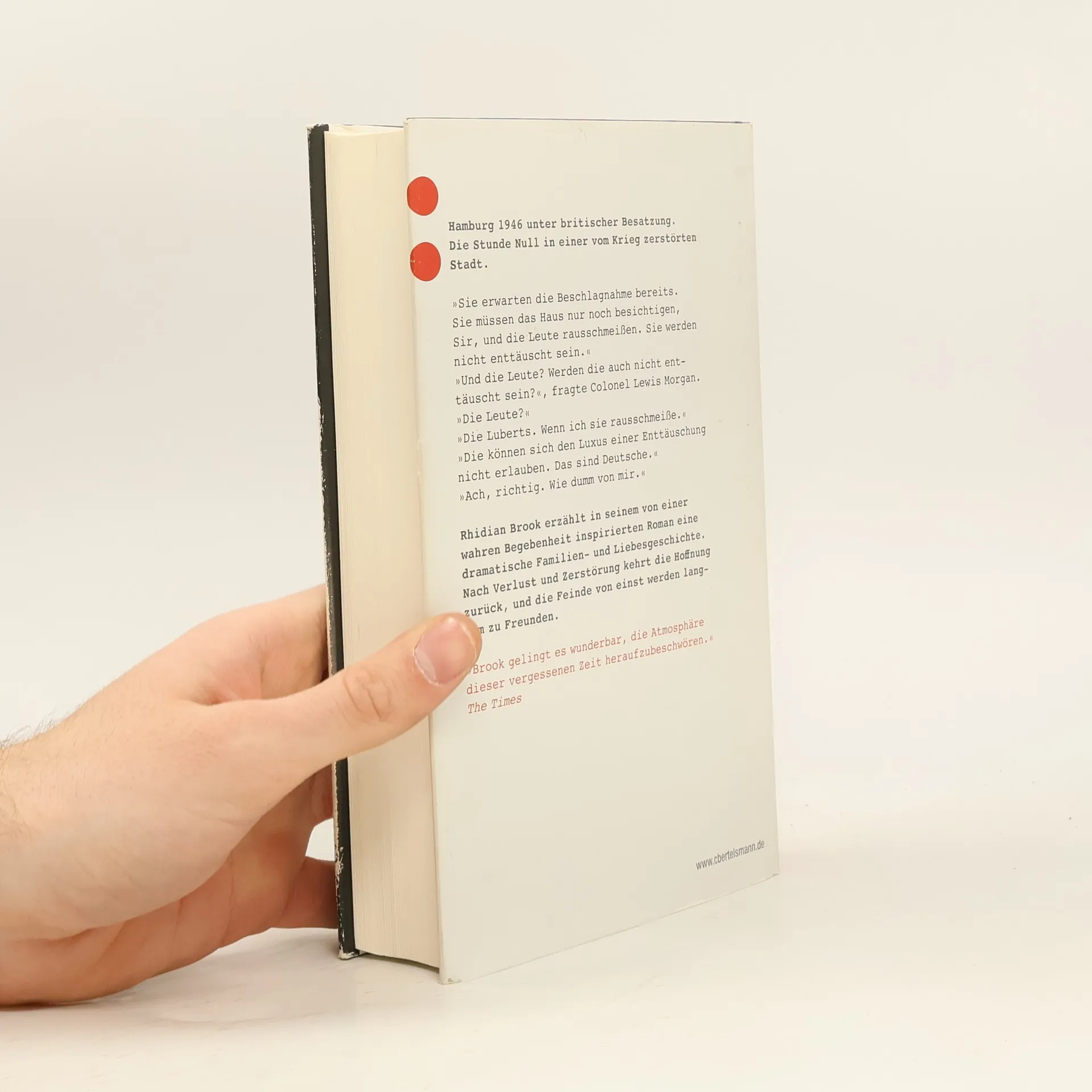 Hamburg 1946 – wenn aus Feinden Freunde werdenHamburg 1946: Ein englischer Offizier soll für die Entnazifizierung und den Wiederaufbau Deutschlands sorgen. Colonel Lewis Morgan wird mit seiner Familie in ein herrschaftliches Haus an der Elbe einquartiert. Seine Frau kann aber nicht verstehen, dass der Hausbesitzer Stefan Lubert nicht ausziehen muss. Sie findet die Idee, mit dem Feind unter einem Dach zu wohnen, unerträglich. Doch als sie den Alltag teilen, erkennt sie, wie grob und falsch ihr Bild von den Deutschen war. Nach und nach entwickelt sich eine unerhörte Nähe zwischen ihr und Stefan Lubert …Ein selten beschriebenes Kapitel deutscher Geschichte – Rhidian Brook zeichnet ein enorm differenziertes Bild von einem Land, das am Boden liegt, von einer verstörten Bevölkerung, aber auch von dem Hoffnungsschimmer nach Tod und Vernichtung. Ein Roman von größter Intensität.
