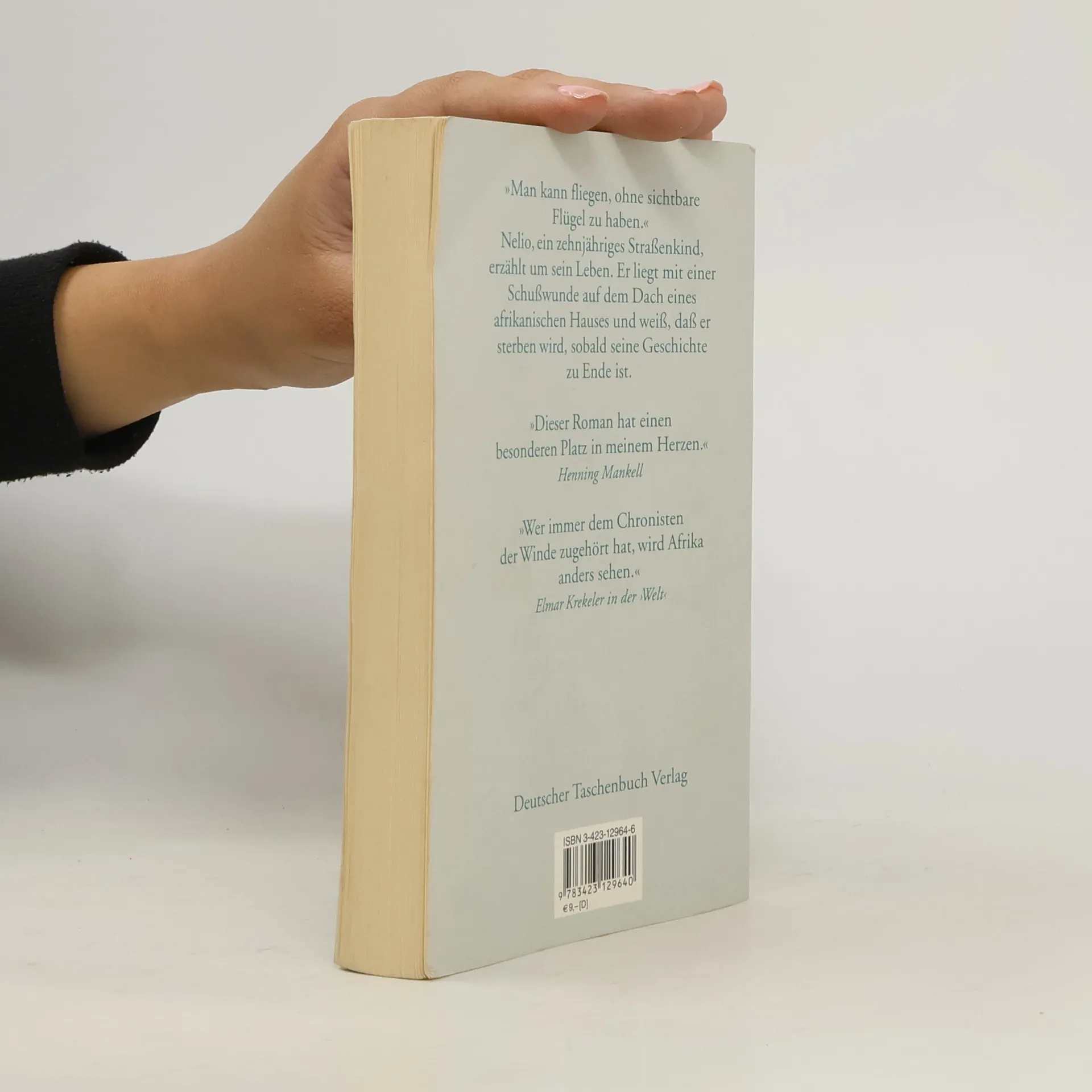 Geschichte eines Straßenkindes »Man kann fliegen, ohne sichtbare Flügel zu haben.« Nelio, ein zehnjähriges Straßenkind, erzählt um sein Leben. Er liegt mit einer Schußwunde auf dem Dach eines afrikanischen Hauses und weiß, daß er sterben wird, sobald seine Geschichte zu Ende ist. Er erzählt, wie die Banditen sein Dorf überfielen, seine Schwester massakrierten und ihn zwingen wollten, seine Verwandten zu töten. Wie er floh, den Weg in die große Stadt fand und Anführer einer Bande von Straßenkindern wurde. Vor allem aber erzählt er vom Leben dieser schwarzen Kinder. Von Mandioca, der Tomaten und Zwiebeln in seinen Taschen wachsen läßt, und von Deolinda, einem Albinomädchen, das die sexuellen Phantasien der Jungen erregt. Vom Geheimnis des Reichtums erzählt er, einer vertrockneten Eidechse in einem gestohlenen Aktenkoffer und einem nächtlichen Besuch beim Präsidenten. Und vom Paradies, das auf keiner Landkarte verzeichnet ist und das man doch finden kann.
