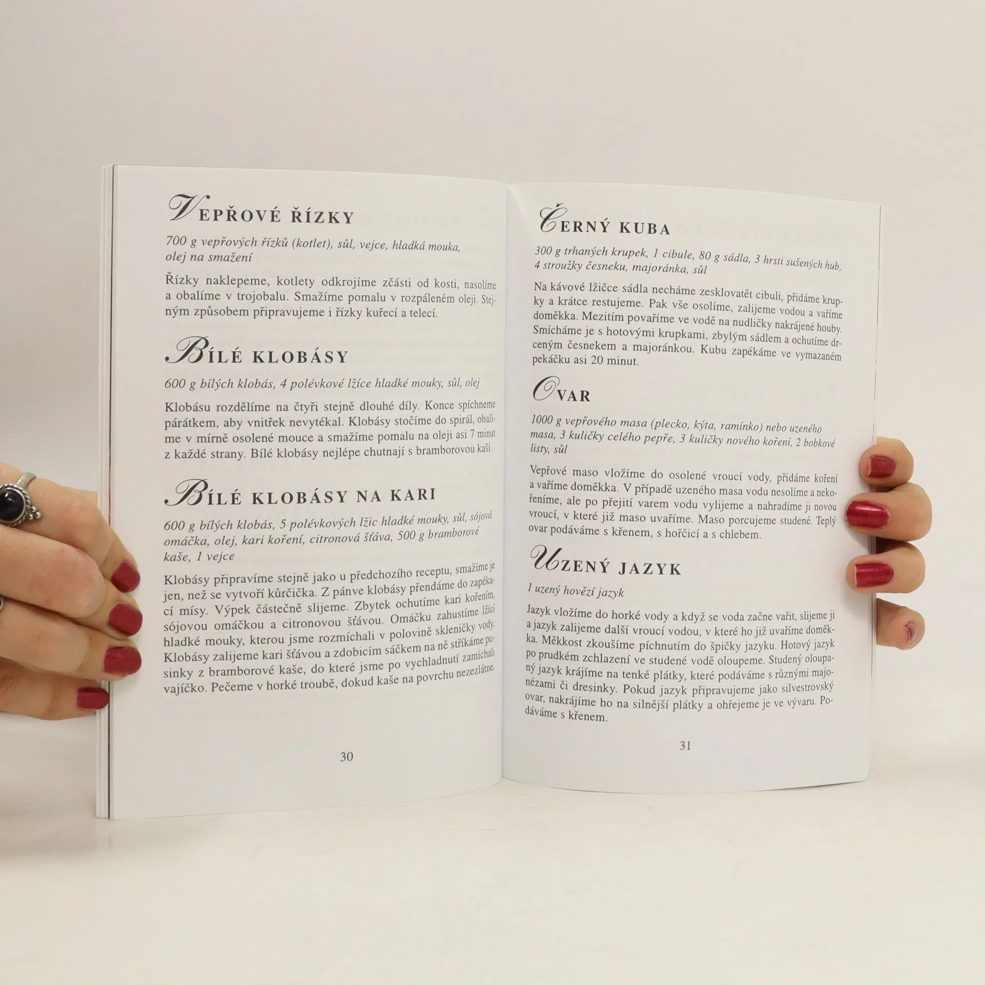 Nápoje, předkrmy a saláty, polévky, masové pokrmy, vánoční pečivo, silvestrovské pochoutky. Ve 181 receptech najdete známé i zcela nové předpisy na vánoční i silvestrovské menu. Vyberou si zde kuchařky a kuchaři, kteří se rádi drží léty prověřených receptur, i takoví, jež se nebojí experimentovat. Recepty jsou psány krátce a jednoduše, kuchařka může být dobrým pomocníkem i všem, kteří vánoční tabuli chystají poprvé. Kapitoly: Předkrmy a saláty, Polévky, Sváteční jídla, Moučníky z listového těsta, Ovocné moučníky, Speciální pečivo Smažené a odpalované moučníky, Cukroví, Polevy, Nápoje, Silvestrovské pochoutky.