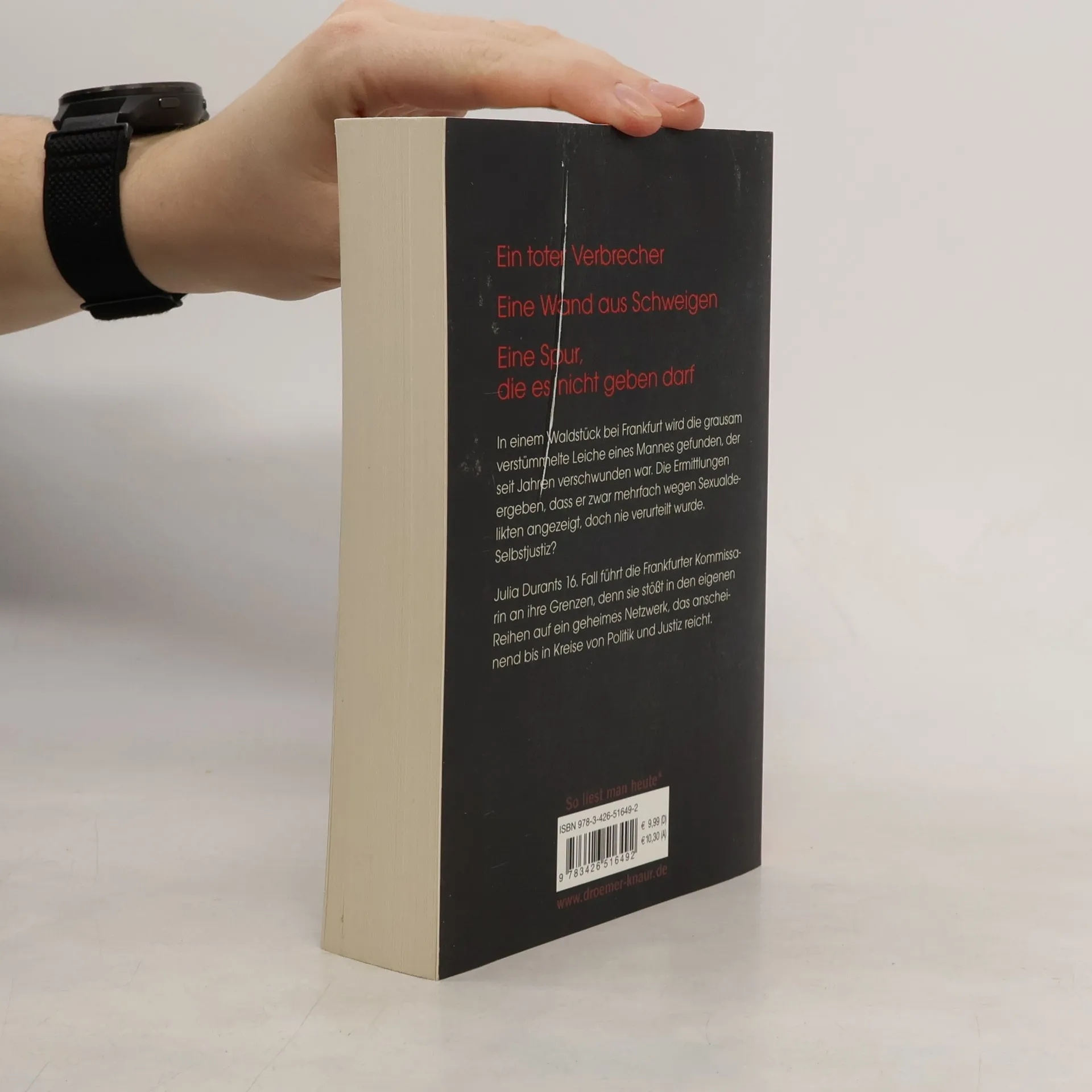 In einem Waldstück bei Frankfurt wird die Leiche eines Sexualstraftäters gefunden, der seit Jahren als vermisst galt. Die Ermittlungen ergeben, dass der Mann zwar mehrfach verdächtigt, doch nie verurteilt wurde. In den Akten tauchen immer wieder derselbe Richter und dieselben Anwälte auf – Zufall? Die brutalen Verletzungen des Mordopfers lassen auf ein sehr persönliches Motiv schließen. Und auf große Wut. Und während Julia Durant sich noch mit der Frage herumschlägt, wem sie hier eigentlich zu Gerechtigkeit verhilft, muss sie erkennen, dass ihr der Gegenwind auch aus den eigenen Reihen entgegenschlägt.