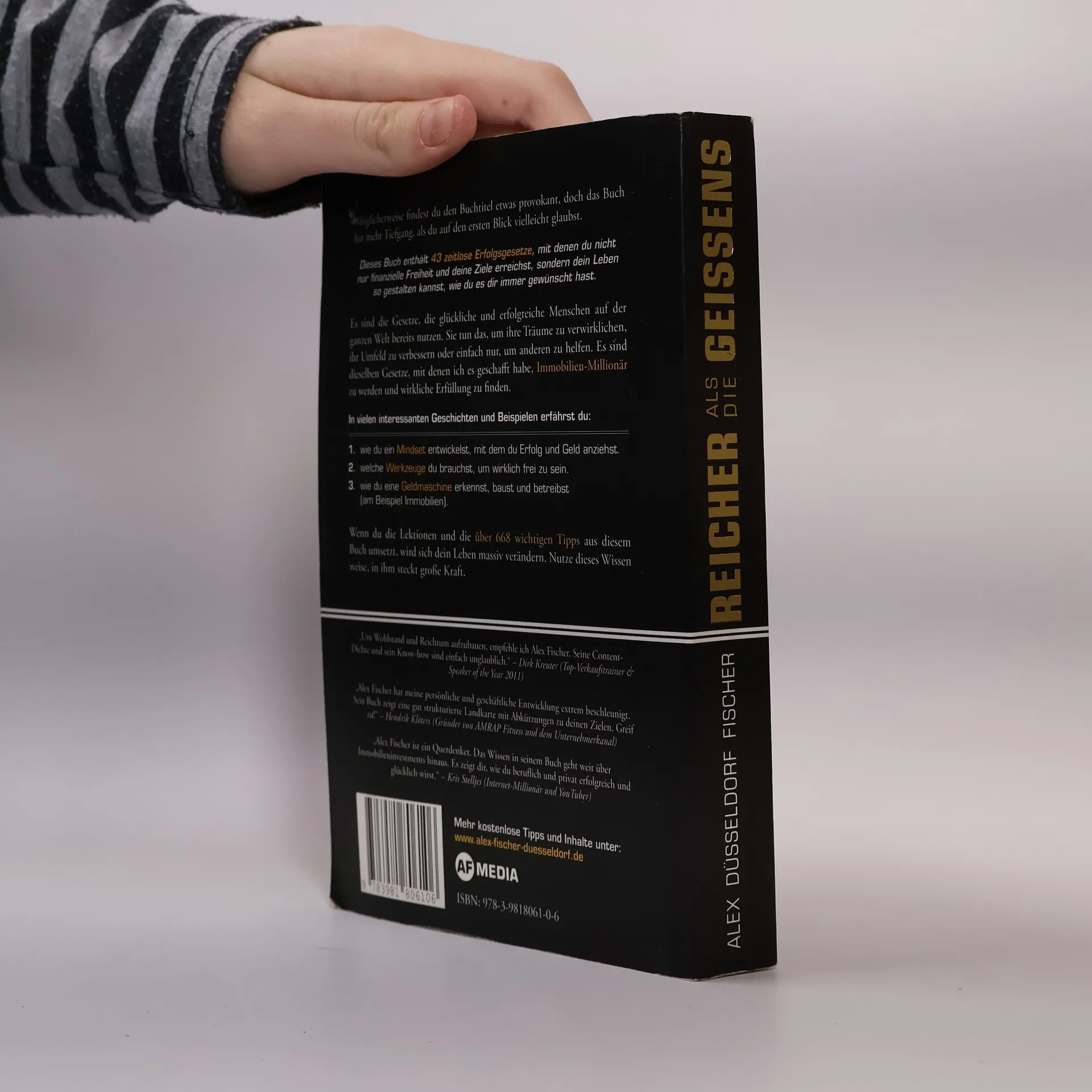 Reicher als die Geissens ist das erste und einzige Wohlstands-Lehrbuch weltweit, das die 43 wichtigsten Erfolgs-Fundamente Schritt für Schritt so inspirierend erarbeitet, dass du dich auch ohne Startkapital in 5 Jahren zum Immobilienmillionär transformieren kannst. Es enthält zeitlose Erfolgsgesetze, die dir helfen, finanzielle Freiheit zu erreichen und dein Leben nach deinen Wünschen zu gestalten. Diese Gesetze werden bereits von glücklichen und erfolgreichen Menschen genutzt, um ihre Träume zu verwirklichen und anderen zu helfen. In vielen Geschichten und anschaulichen Beispielen erfährst du unter anderem: - Wie du in fünf Jahren ohne Startkapital zum Immobilien-Millionär wirst. - Wie du die 43 Erfolgsgesetze verinnerlichst und ein Leben nach deinen Vorstellungen führst. - Wie du ein wandelnder Geldmagnet wirst, indem du die geheimen Geldgesetze befolgst. - Wie du ein einflussreiches Power-Netzwerk aufbaust und Celebrities sowie Influencer anziehst. - Wie du deine Stärken entdeckst und deine Berufung erkennst, um ein glückliches Leben zu führen. - Wie du schnell Eigenkapital und Cashflow generierst und passives Einkommen aufbaust. - Wie du Kapital, Zeit und Ressourcen optimal hebelst, um maximale Wirkung zu erzielen. Setze die Lektionen und über 668 Tipps um, und erlebe eine massive Veränderung in deinem Leben. Nutze dieses Wissen weise, denn es birgt große Kraft.