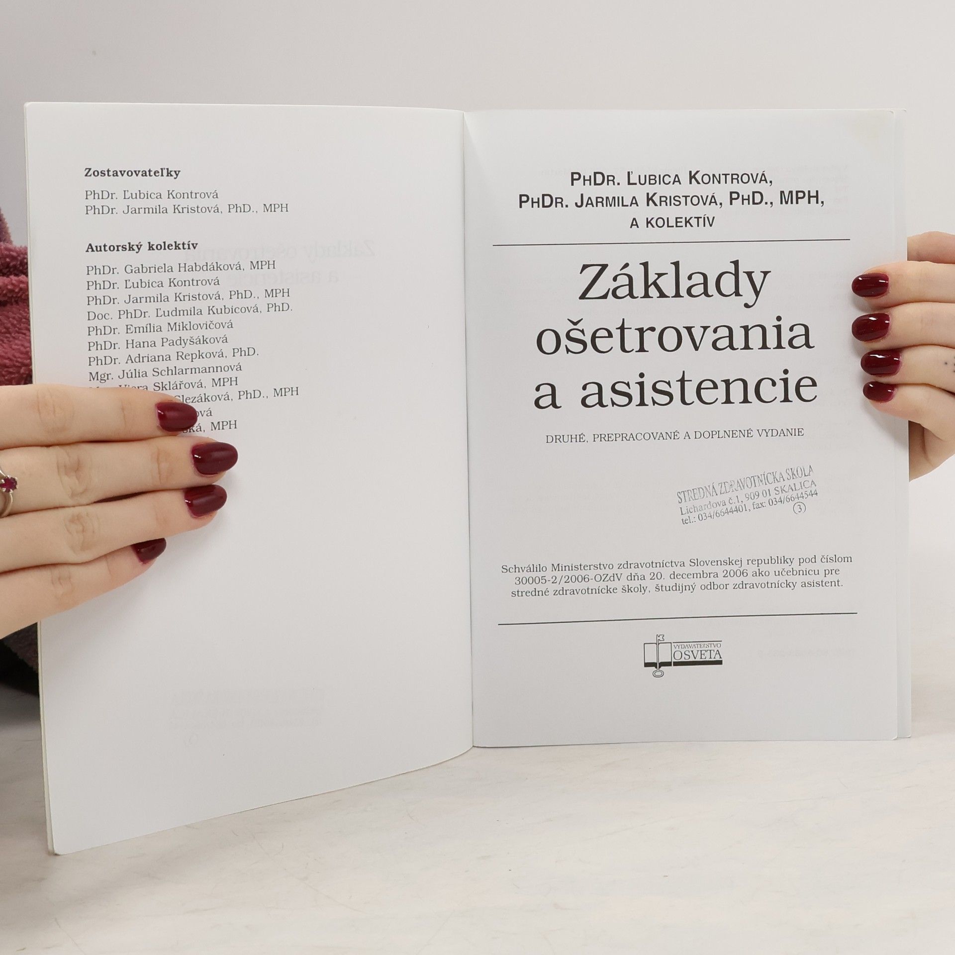 Základy ošetrovania a asistencie, Ľubica Kontrová, Jarmila Kristová