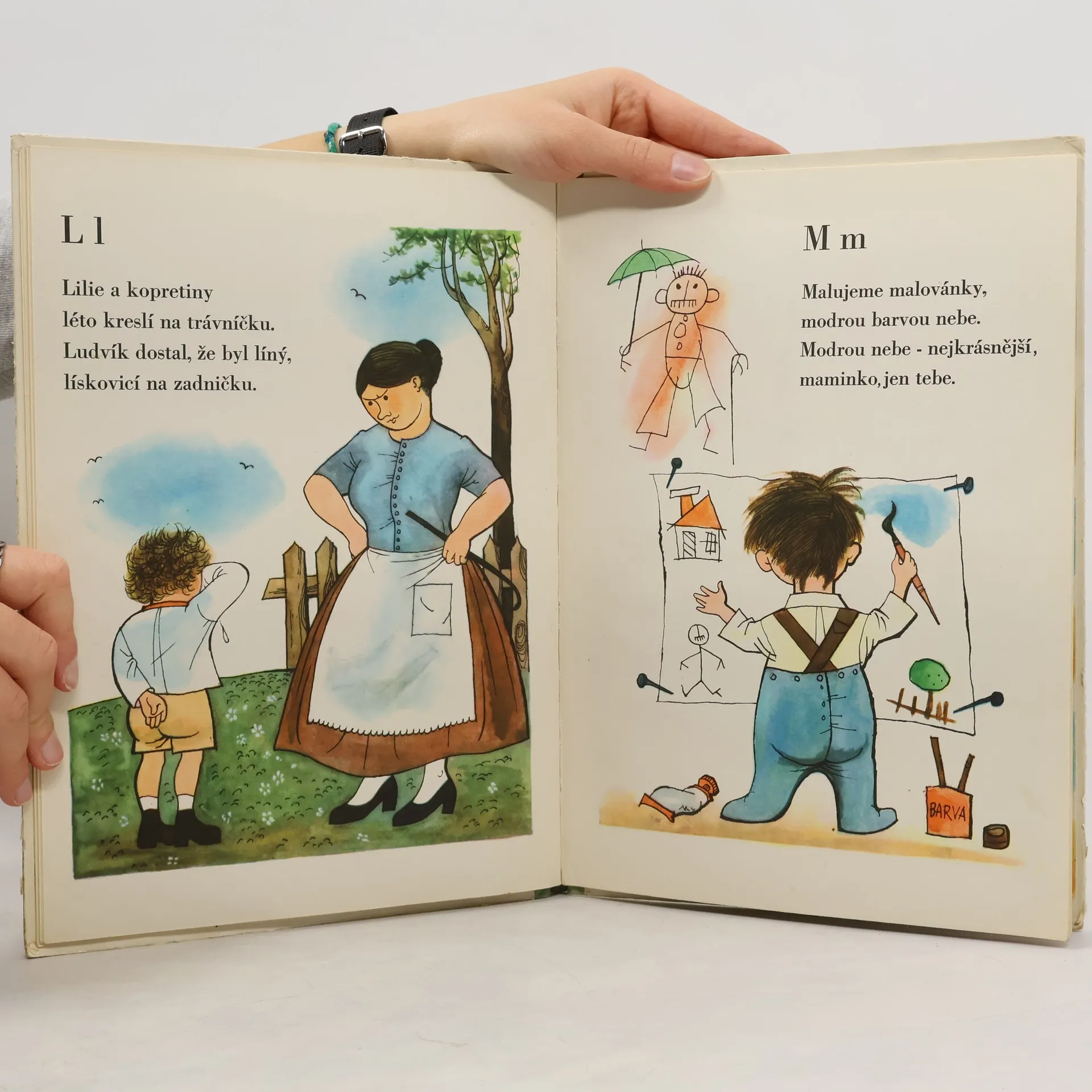 Říkadla s obrázky Aleny Ladové ke každému písmenu v abecedě.