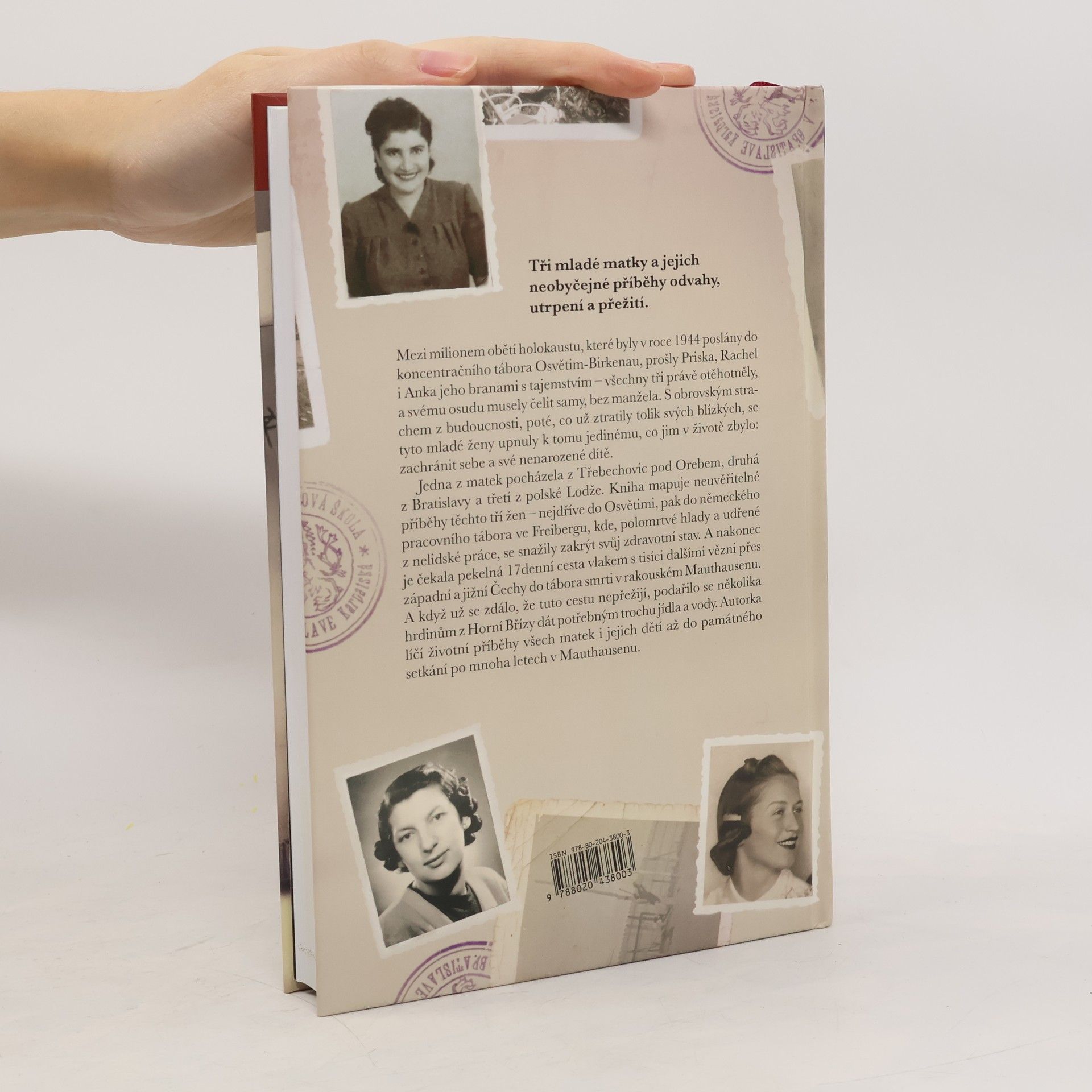 Tři mladé matky a jejich neobyčejné příběhy odvahy, utrpení a přežití Mezi milionem obětí holokaustu, které byly v roce 1944 poslány do koncentračního tábora Osvětim-Birkenau, prošly Priska, Rachel i Anka jeho branami s tajemstvím – všechny tři právě otěhotněly, a svému osudu musely čelit samy, bez manžela. S obrovským strachem z budoucnosti, poté, co už ztratily tolik svých blízkých, se tyto mladé ženy upnuly k tomu jedinému, co jim v životě zbylo: zachránit sebe a své nenarozené dítě. Jedna z matek pocházela z Třebechovic pod Orebem, druhá z Bratislavy a třetí z polské Lodže. Kniha mapuje neuvěřitelné příběhy těchto tří žen – nejdříve do Osvětimi, pak do německého pracovního tábora, kde, polomrtvé hlady a udřené z nelidské práce, se snažily zakrýt svůj zdravotní stav. A nakonec je čekala pekelná 17denní cesta vlakem s tisíci dalšími vězni přes západní a jižní Čechy do tábora smrti v rakouském Mauthausenu. A když už se zdálo, že tuto cestu nepřežijí, podařilo se několika hrdinům z Horní Břízy dát potřebným trochu jídla a vody.