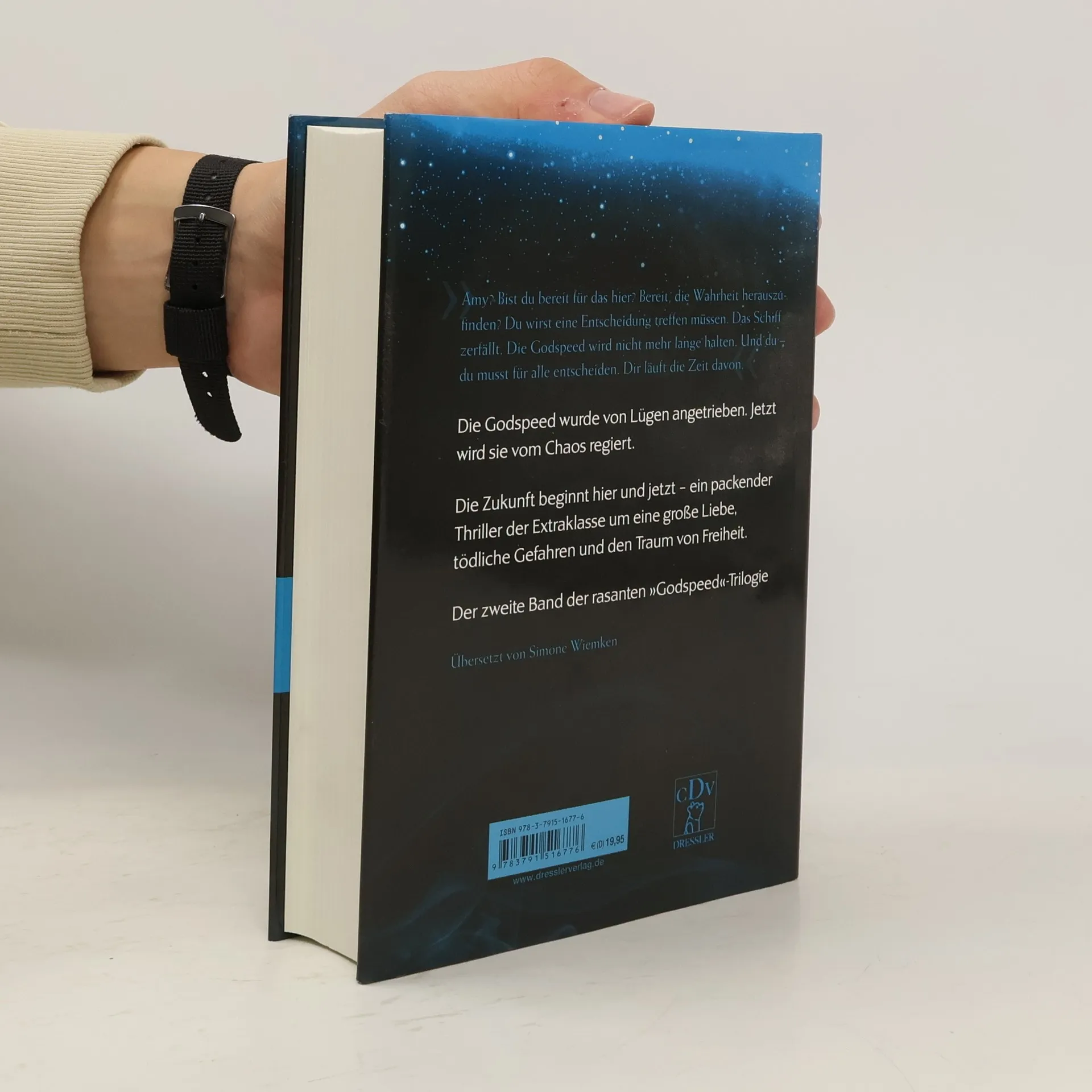 Spannung und Gefühl. Nicht von dieser Welt! Die Zukunft für Amy und Junior liegt in weiter Ferne. Während ihre Gefühle füreinander stärker werden, wird die Lage auf dem Raumschiff, der „Godspeed“, immer bedrohlicher. Ohne die kontrollierende Droge Phydus, das heißt ihrem freien Willen unterworfen, sind die Menschen an Bord überfordert. Die Stimmung droht zu kippen. Auch die Technik entpuppt sich als trügerisch: Wird nur eine Gruppe Auserwählter das Ziel, die Zentauri-Erde, erreichen? Der Druck auf Amy und Junior wächst: Wer ist Freund, wer Feind? Und wohin führt sie ihre Liebe? Der zweite Band der spektakulären Godspeed-Trilogie ist ein Genre-Mix aus Dystopie, Sci-Fi-Thriller und Romantik. Auch als