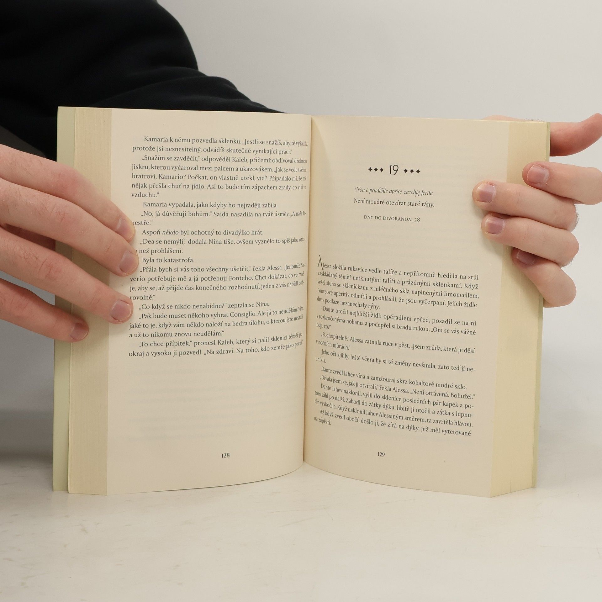 Tři svatby. Tři pohřby. A trojnásobná vdova s děsivým prokletím. Alessu vybrali bohové, aby chránila svůj lid. Do vínku však dostala krutý dar, který celou situaci komplikuje. K dosažení moci k sobě totiž potřebuje partnera s magickým nadáním, jehož sílu by mohla čerpat a násobit. Naneštěstí však své potenciální partnery nemilosrdně zabíjí pouhým dotykem. A dokud nepotká toho správného společníka, bude je zabíjet dál. Jak ale zjistí, kdo je ten pravý, když se ho nemůže ani letmo dotknout? Ve svých osmnácti letech se Alessa stává už potřetí vdovou. A lidu dochází trpělivost. Zatímco za branami Citadely doutná povstání, její vlastní vojáci se obrátí proti ní. Zoufalá Alessa ve strachu o život přinutí neochotného pouličního vyvrhele Danteho, aby se stal jejím osobním strážcem. Dante však skrývá svá vlastní nebezpečná tajemství. Mohl by být tím, kdo Alesse pomůže ovládnout její dar? Nebo se naopak stane její zkázou?