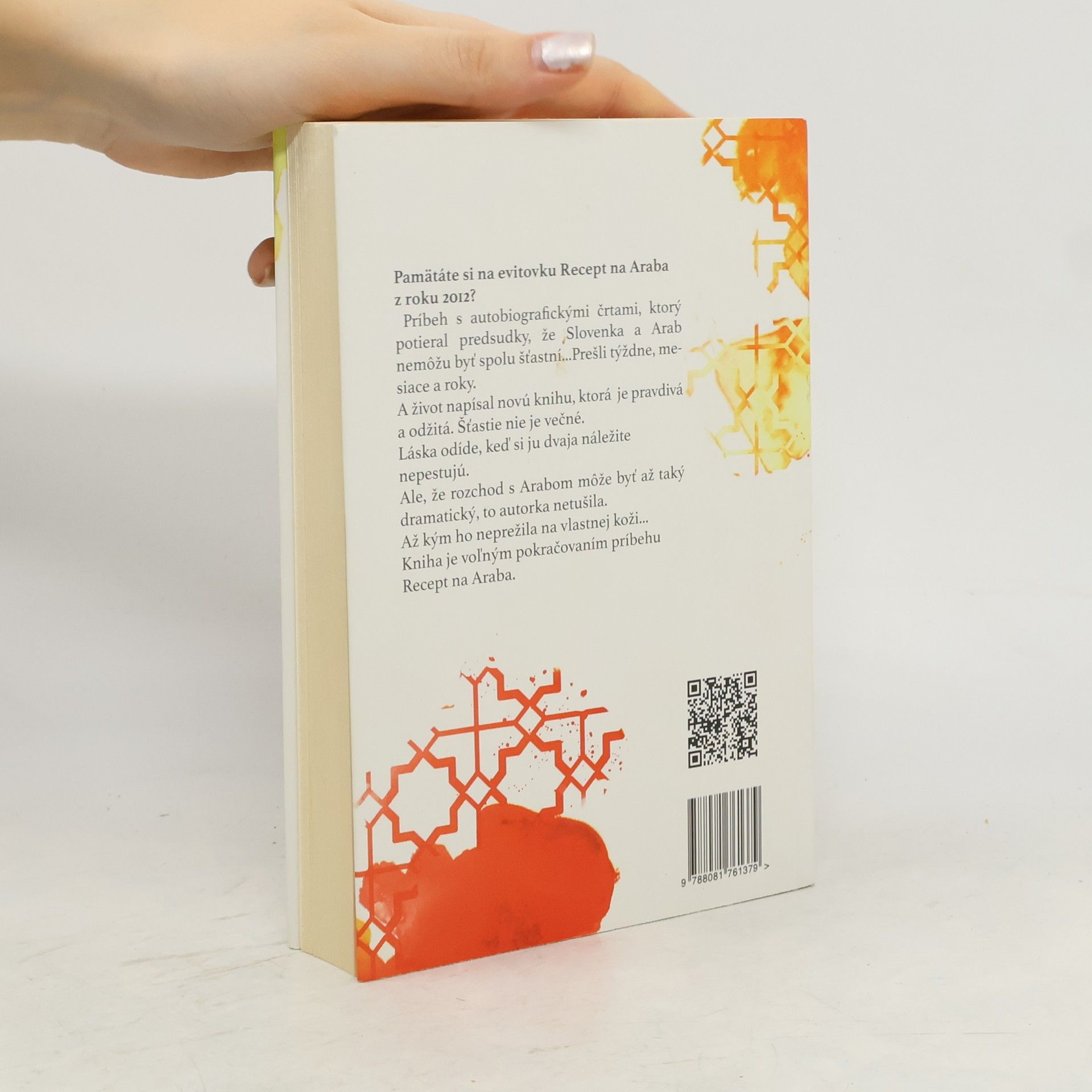Ako dopadli životy hrdinov bestselleru Recept na Araba. Pamätáte si na evitovku Recept na Araba z roku 2012? Príbeh s autobiografickými črtami, ktorý potieral predsudky, že Slovenka a Arab nemôžu byť spolu šťastní... Prešli týždne, mesiace a roky. A život napísal novú knihu, ktorá je pravdivá a odžitá. Šťastie nie je večné. Láska odíde, keď si ju dvaja náležite nepestujú. Ale, že rozchod s Arabom môže byť až taký dramatický, to autorka netušila. Až kým ho neprežila na vlastnej koži..