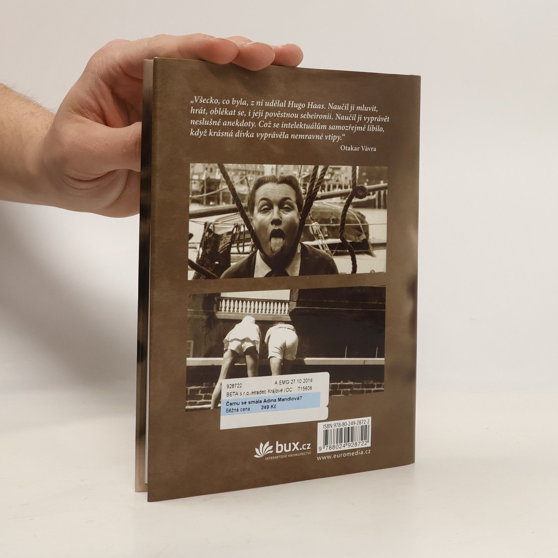 Jaká vlastně byla Adina Mandlová, obdivovaná i zatracovaná prvorepubliková filmová hvězda, a proč své memoáry, vydané ve spolupráci s Josefem Škvoreckým, nazvala Dneska už se tomu směju? Prostřednictvím úryvků z jejich rozhovorů a zejména ze svědectví padesáti osobností s jejich často protichůdnými pohledy získává čtenář plastický obrázek o nevšedním životě této legendární herečky. Autor také přibližuje její pobyt v Anglii, na Maltě a v Kanadě a poprvé tu zazní otevřená výpověď Adininy neteře Ludmily Mandlové-Pirillo, jediné dnes žijící příbuzné. Knihu doprovází bohatá obrazová příloha.