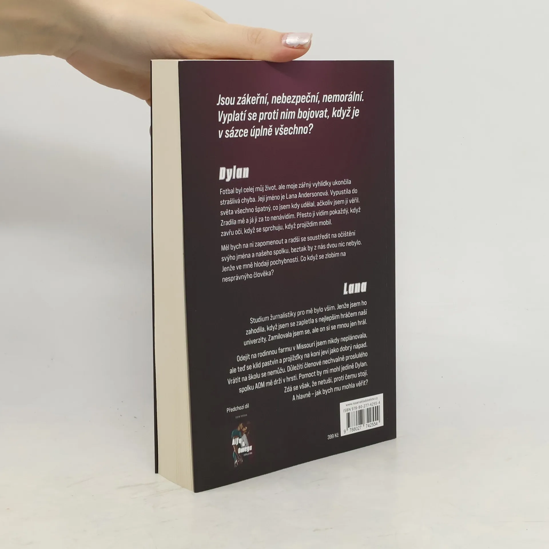 Pokračování erotického románu, v němž šťouravá novinářka odhalila nemorální chování několika hvězd školního fotbalového týmu, a tím přišla o svou lásku. Dokáže to nějak napravit? Pro Dylana byl fotbal celým jeho životem. Pro Lanu zase bylo vším studium sportovní žurnalistiky. Pak se spolu ale ti dva zapletli a... přišla zrada. V článku podepsaném Lanou bylo odhaleno všechno špatné, co kdy Dylan udělal - a také pár dalších fotbalových hvězd a členů bratrstva Alfa Omega Mí. S láskou a důvěrou je konec, a také to pro Lanu znamená odchod z univerzity. Vrací se domů na rodinnou farmu v Missouri. Jediný, kdo by ji mohl dostat zpět na školu, je Dylan. Ten už ale s Lanou nechce nic mít - i když na ní nedokáže přestat myslet.