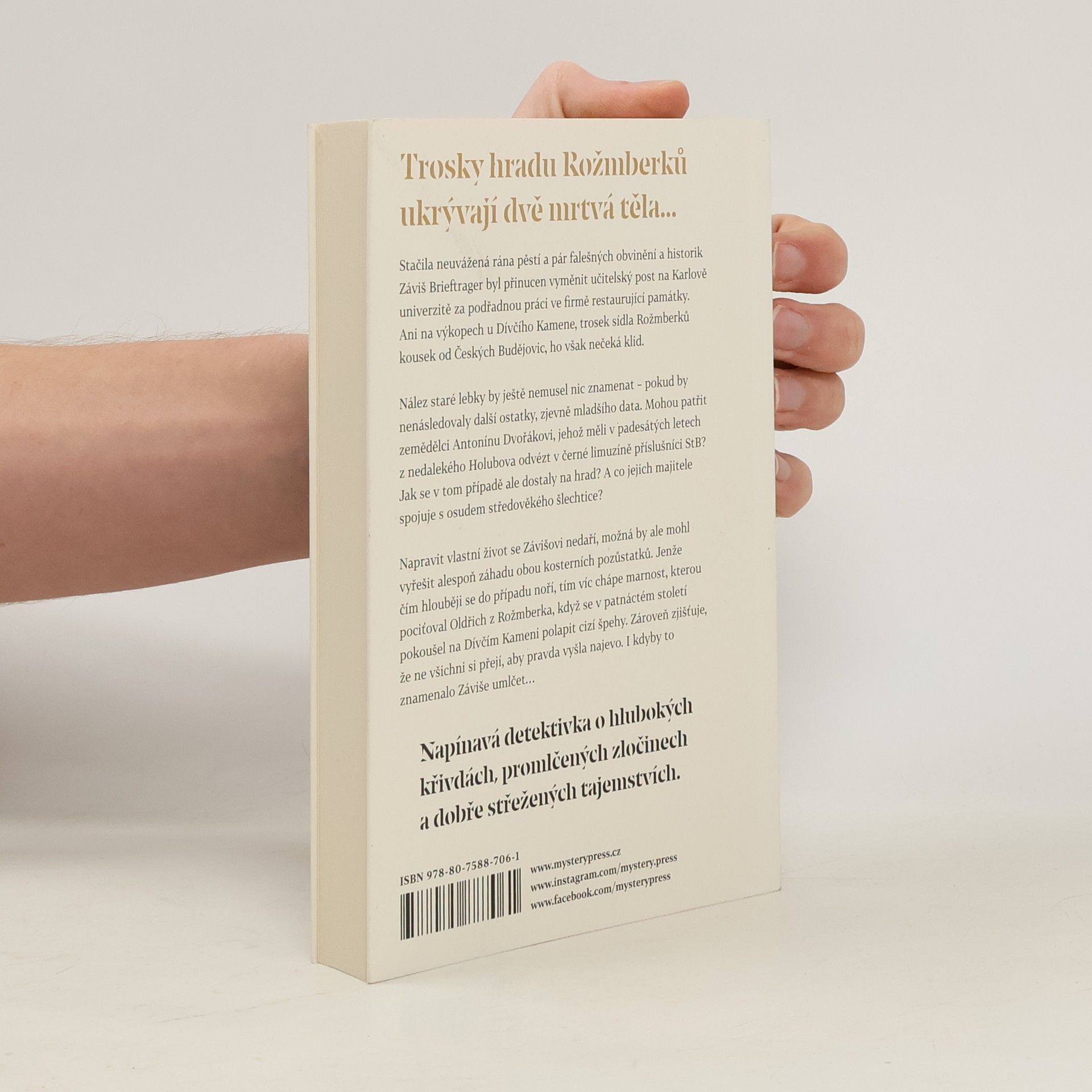 TROSKY HRADU ROŽMBERKŮ UKRÝVAJÍ DVĚ MRTVÁ TĚLA… Stačila neuvážená rána pěstí a pár falešných obvinění a historik Záviš Brieftrager byl přinucen vyměnit učitelský post na Karlově univerzitě za podřadnou práci ve firmě restaurující památky. Ani na výkopech u Dívčího Kamene, trosek sídla Rožmberků kousek od Českých Budějovic, ho však nečeká klid. Nález staré lebky by ještě nemusel nic znamenat – pokud by nenásledovaly další ostatky, zjevně mladšího data. Mohou patřit zemědělci Antonínu Dvořákovi, jehož měli v padesátých letech z nedalekého Holubova odvézt v černé limuzíně příslušníci StB? Jak se v tom případě ale dostaly na hrad? A co jejich majitele spojuje s osudem středověkého šlechtice? Napravit vlastní život se Závišovi nedaří, možná by ale mohl vyřešit alespoň záhadu obou kosterních pozůstatků. Jenže čím hlouběji se do případu noří, tím víc chápe marnost, kterou pociťoval Oldřich z Rožmberka, když se v patnáctém století pokoušel na Dívčím Kameni polapit cizí špehy. Zároveň zjišťuje, že ne všichni si přejí, aby pravda vyšla najevo. I kdyby to znamenalo Záviše umlčet… ___ Napínavá detektivka o hlubokých křivdách, promlčených zločinech a dobře střežených tajemstvích.