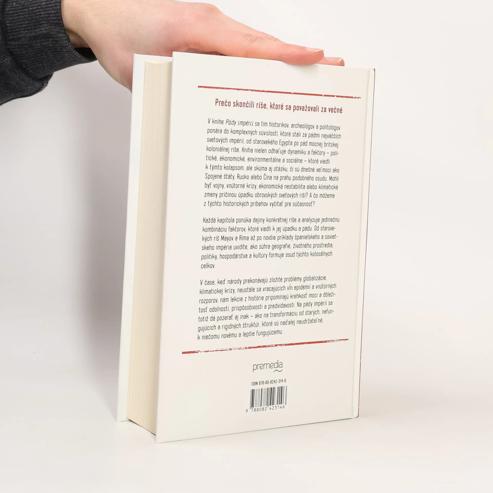 V knihe Pády impérií sa tím historikov, archeológov a politológov ponára do komplexných súvislostí, ktoré stáli za pádmi najväčších svetových impérií, od starovekého Egypta po pád mocnej britskej koloniálnej ríše. Kniha nielen odhaľuje dynamiku a faktory – politické, ekonomické, environmentálne a sociálne – ktoré viedli k týmtokolapsom, ale skúma aj otázku, či sú dnešné veľmoci ako Spojené štáty, Rusko alebo Čína na prahu podobného osudu. Mohli byť vojny, vnútorné krízy, ekonomická nestabilita alebo klimatické zmeny príčinou úpadku obrovských svetových ríši? A čo môžeme z týchto historických príbehov vyčítať pre súčasnosť? Každá kapitola ponúka dejiny konkrétnej ríše a analyzuje jedinečnú kombináciu faktorov, ktoré viedli k jej úpadku a pádu. Od starovekých ríš Mayov a Ríma až po novšie príklady španielskeho a sovietskeho impéria uvidíte, ako súhra geografie, životného prostredia, politiky, hospodárstva a kultúry formuje osud týchto kolosálnych celkov. V čase, keď národy prekonávajú zložité problémy globalizácie, klimatickej krízy, neustále sa vracajúcich vĺn epidémií a vnútorných rozporov, nám lekcie z histórie pripomínajú krehkosť moci a dôležitosť odolnosti, prispôsobivosti a predvídavosti. Na pády impérií sa totiž dá pozerať aj inak – ako na transformáciu od starých, nefungujúcich a rigidných štruktúr, ktoré sú naďalej neudržateľné, k niečomu novému a lepšie fungujúcemu.