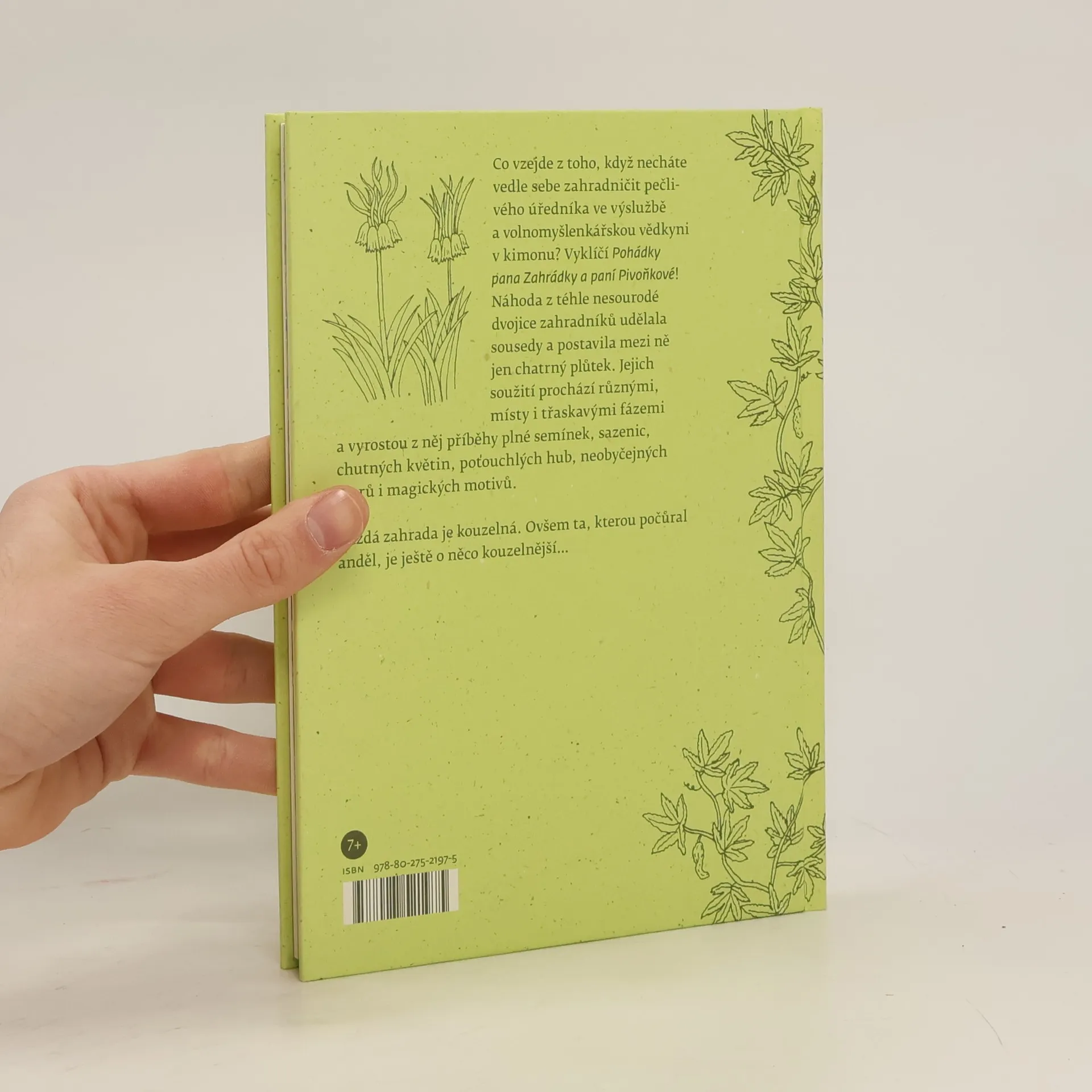 Co vám vyroste, když zkřížíte kralupskou obří dýni s výrazně vonnými řebčíky královskými? Na to by znal odpověď snad jedině Gregor Johann Mendel. Co ale vzejde z toho, když necháte vedle sebe zahradničit pečlivého úředníka ve výslužbě a volnomyšlenkářskou vědkyni v kimonu? Vyklíčí z toho Pohádky pana Zahrádky a paní Pivoňkové! Půvabné a zároveň vtipné, takové je vyprávění Radka Malého a Markéty Pilátové, kteří spojili svoje zahradnické zážitky a spisovatelský um, aby vám přinesli příběhy, jež by se mohly odehrát klidně i na vaší zahrádce. Není v nich nouze o inspiraci a praktické nápady, ale ani o magické motivy, jak taky jinak, když zrovna zahrádku pana Zahrádky počůral anděl. Zahrady představují svébytný svět, kde jako by se zastavil čas. Příběhy dvou naprosto odlišných zahrádkářů, ze kterých náhoda udělala sousedy a postavila mezi ně jen chatrný plůtek, přenesou tuhle zelenou oázu i k vám domů. Kniha rozkvetla díky perokresbám a akvarelům Kláry Břicháčkové a třešinkou na dortu je recyklovaný papír s obsahem pravé trávy. Ať žije zahrada!