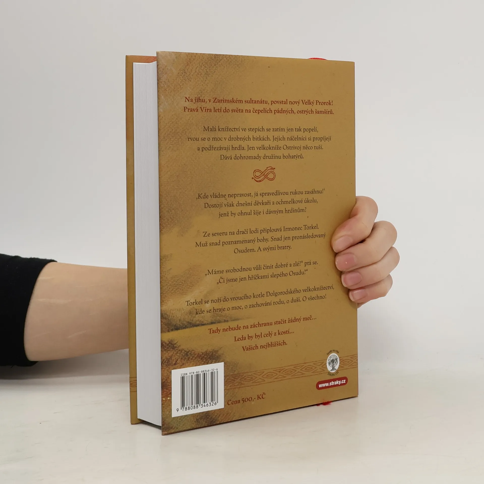 Na jihu, v Zarimském sultanátu, povstal nový Velký Prorok! Pravá Víra letí do světa na čepelích pádných, ostrých šamšírů. Malá knížectví ve stepích se zatím jen tak popelí, rvou se o moc v drobných bitkách. Jejich náčelníci si propíjejí a podřezávají hrdla. Jen velkokníže Ostrivoj něco tuší. Dává dohromady družinu bohatýrů. Kde vládne nepravost, já spravedlivou rukou zasáhnu! Dostojí však dnešní děvkaři a ochmelkové úkolu, jenž by ohnul šíje i dávným hrdinům? Ze severu na dračí lodi připlouvá Irmonec Torkel. Muž snad poznamenaný bohy. Snad jen pronásledovaný Osudem. A svými bratry. „Máme svobodnou vůli činit dobré a zlé?“ ptá se. „Či jsme jen hříčkami slepého Osudu?“ Torkel se noří do vroucího kotle Dolgorodského velkoknížectví, kde se hraje o moc, o zachování rodu, o duši. O všechno! Tady nebude na záchranu stačit žádný meč… Leda by byl celý z kostí… Vašich nejbližších.