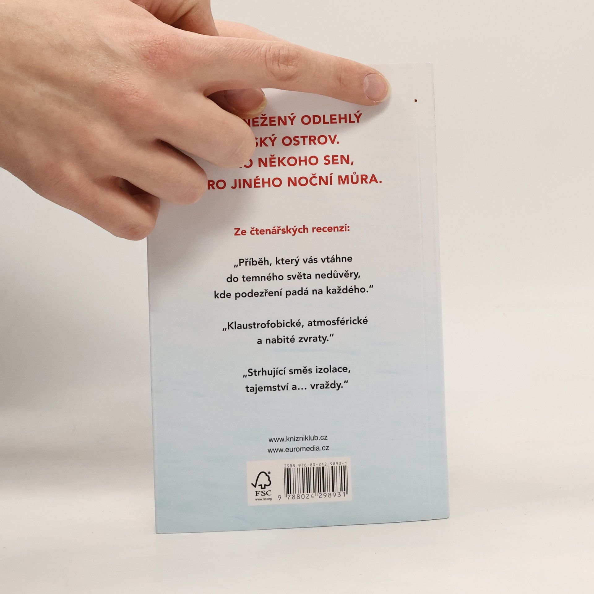 Je mrazivý Silvestr. Na větrem ošlehaném zasněženém ostrově, kolem nějž zuří Atlantik, se sejde šest přátel. Od tragédie, která je rozdělila, už uplynulo deset let a za tu dobu se toho hodně změnilo. Dávná kamarádství v celoživotní tajemství. Důležité vztahy v hlubokou žárlivost. Jenže nadějné shledání po letech se nekoná. Sotva začnou oslavy, ztratí se jeden z hostů. Pak se na ostrově rozpoutá bouře. Všichni jsou v pasti, protože vypadla elektřina i telefonní signál. Nikdo neví, komu věřit. Nikdo není tím, kým se zdá.