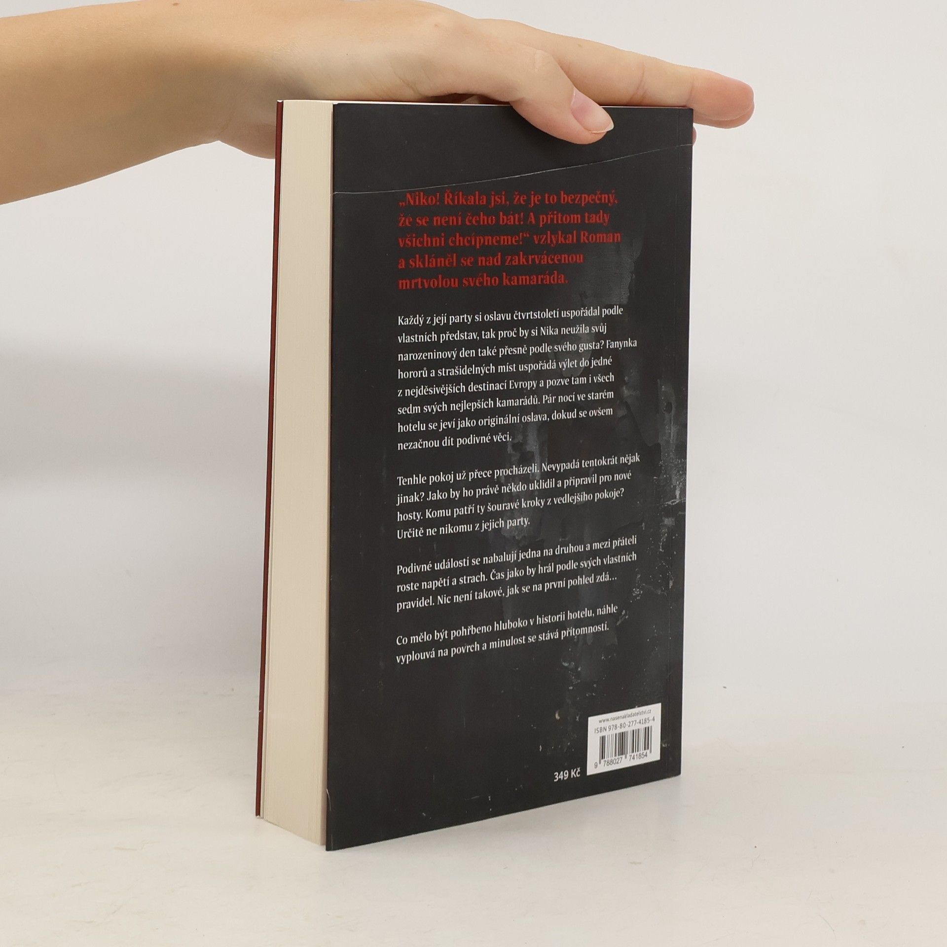 Každý si oslavu čtvrtstoletí uspořádal podle svých představ, tak proč by si Nika nemohla svůj narozeninový den užít po svém? Milovnice děsivých hororů a strašidelných míst uspořádá výlet do jedné z nejděsivějších destinací Evropy, kam pozve i svých sedm nejlepších kamarádů. Pár nocí ve starém hotelu, to zní jako originální nápad na slavení, dokud se ovšem nezačnou dít hodně divné věci. Tenhle pokoj už procházeli, je stejný, a přesto naprosto jiný. Jako by ho někdo právě uklidil a on čekal na příchod nových hostů. Zaslechli šouravé kroky z vedlejšího pokoje. Komu ale patří? Určitě žádnému z kamarádů. Další a další děsivé a nepochopitelné události stupňují jejich strach. Čas si s nimi pohrává podle neznámých pravidel a nic není takové, jaké se zdá. A co se zdá, není takové, jaké má být. Minulost se stává přítomností a co má být pohřbeno hluboko v historii hotelu, to neochvějně vyplouvá na povrch.