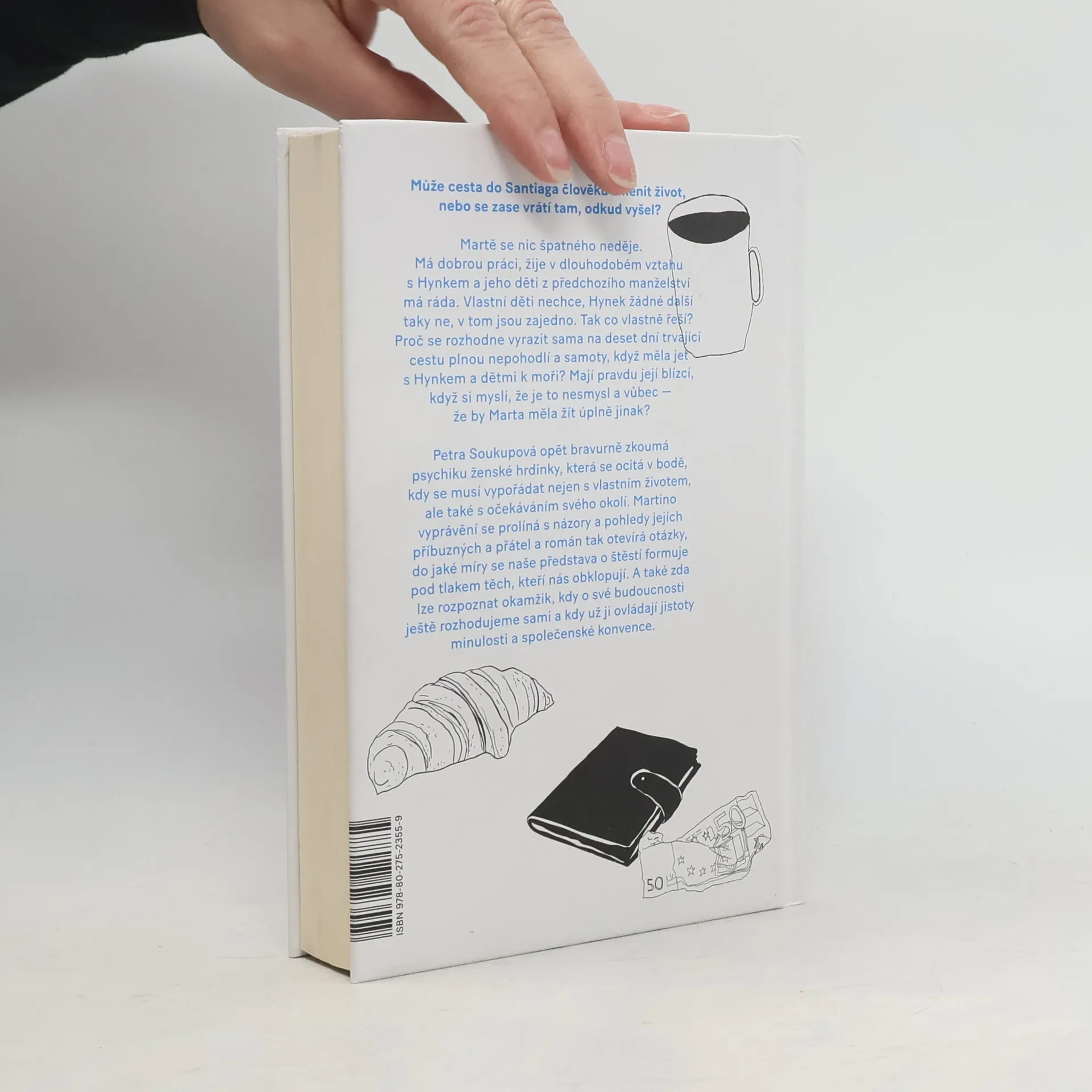 Může cesta do Santiaga změnit člověku život nebo se zase vrátí tam, odkud vyšel? Martě se nic špatného neděje. Má dobrou práci, žije v dlouhodobém vztahu s Hynkem a jeho děti z předchozího manželství má ráda. Svoje děti nechce, Hynek žádné další taky ne, v tom jsou zajedno. Tak co chce vlastně řešit? Proč se rozhodne vyrazitsama na deset dní trvající cestu plnou nepohodlí a samoty, když měla jet s Hynkem a dětmi k moři? Mají pravdu její blízcí, když si myslí, že je to nesmysl a vůbec — že by Marta měla žít úplně jinak? Petra Soukupová opět bravurně zkoumá psychiku ženské hrdinky, která se ocitá v bodě, kdy se musí vypořádat nejen s vlastním životem, ale také s očekáváními svého okolí. Martino vyprávění se prolíná s názory a pohledy jejích blízkých a román tak otevírá otázky, do jaké míry se naše představa o štěstí formuje pod tlakem těch, kteří nás obklopují. A také zda lze rozpoznat okamžik, kdy o své budoucnosti ještě rozhodujeme sami a kdy už ji ovládají jistoty minulosti a společenské konvence.