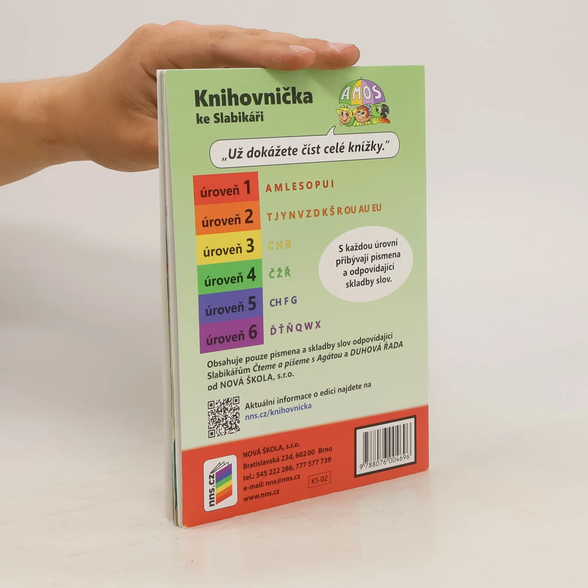 Milí čtenáři, s Knihovničkou ke Slabikáři AMOS můžete číst celé knížky už od 1. ročníku. Můžete začít hned po dokončení Živé abecedy, a jak se budete ve Slabikáři Čteme a píšeme s Agátou nebo DUHOVÁ ŘADA postupně učit nová písmena, můžete postupovat k vyšším úrovním. NNSK1-02