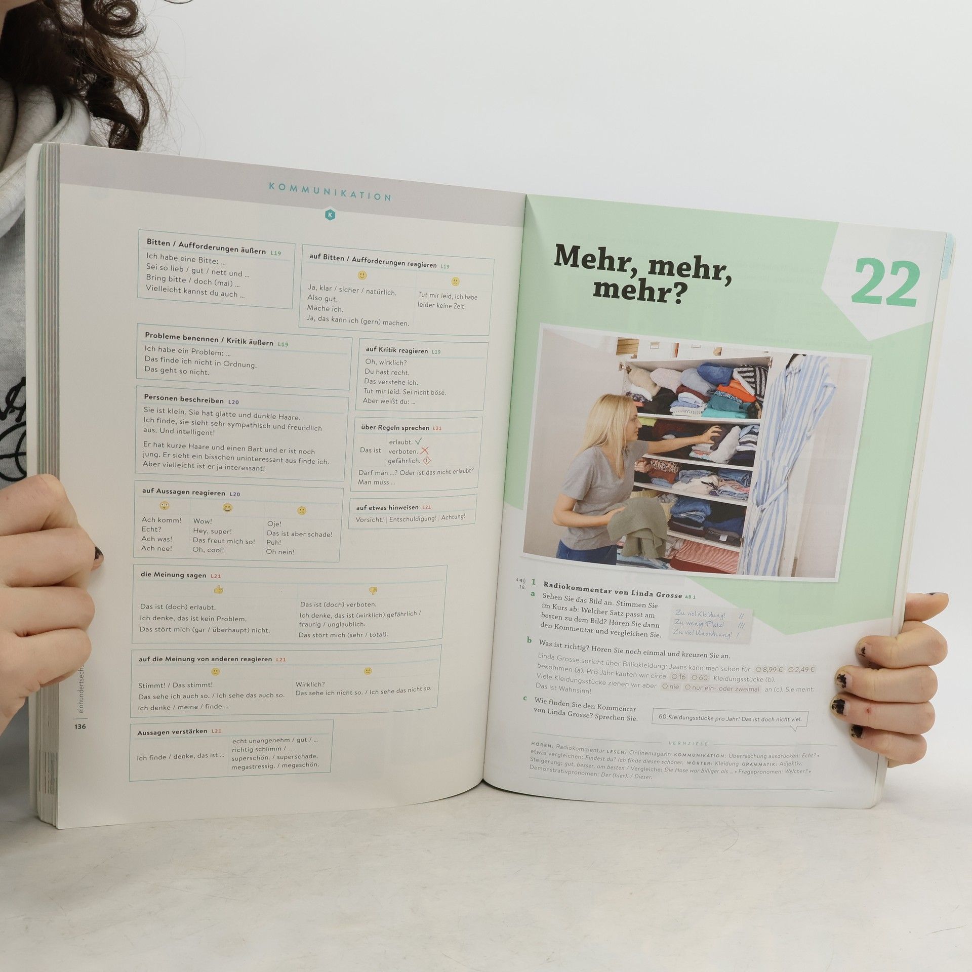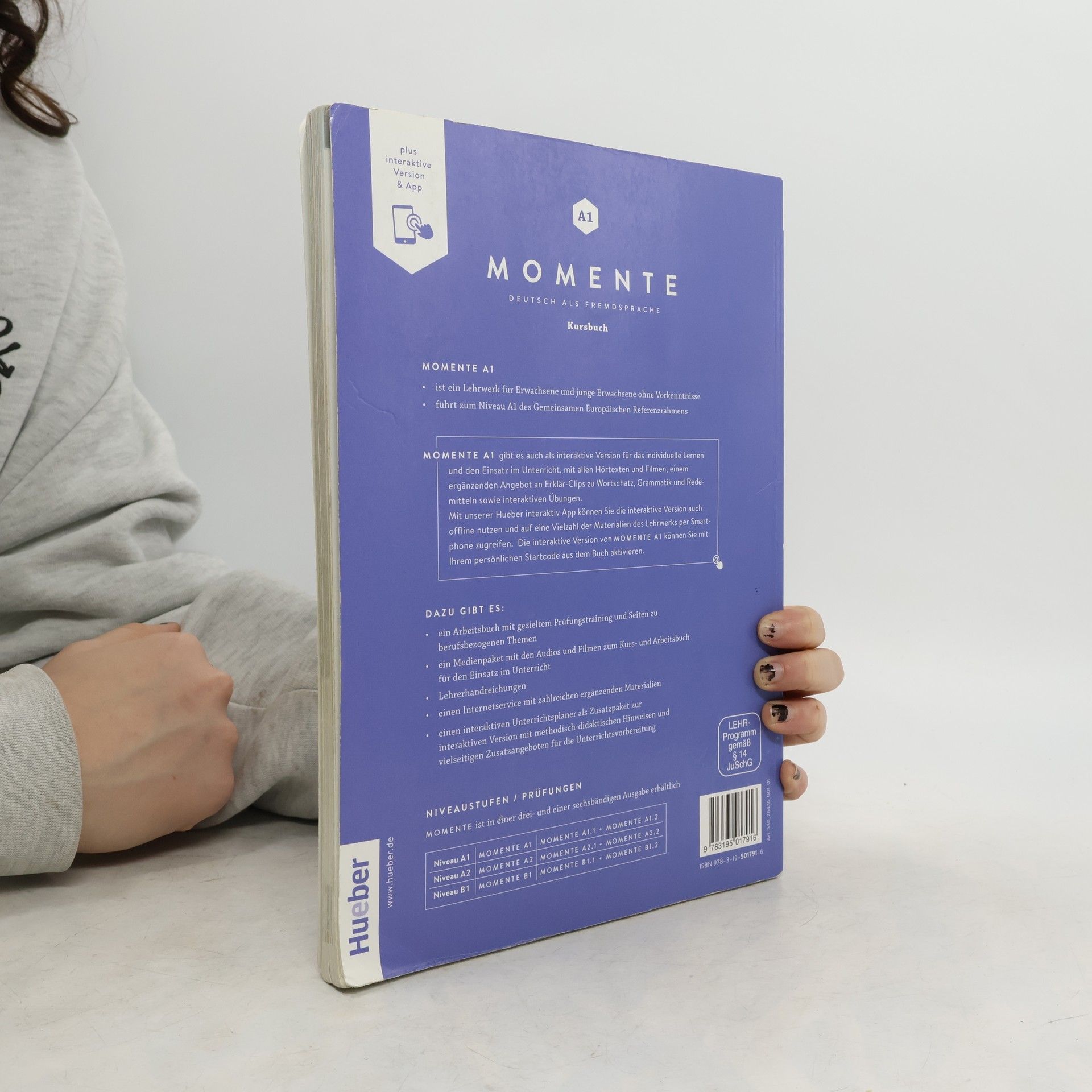Zielniveau A1: Ein intermediales Grundstufenlehrwerk für Deutsch als Fremdsprache, das für Erwachsene und Jugendliche ab 16 Jahren in A1-Kursen weltweit konzipiert ist. Der modulare Aufbau umfasst drei Lektionen à vier Seiten sowie ein „Magazin“ pro Modul. Jede Lektion beginnt mit einem emotional ansprechenden Bildimpuls, der die Geschichte von Protagonisten erzählt und den thematischen Rahmen für die Erarbeitung von Fertigkeiten, Grammatik, Wortschatz und Redemitteln bildet. In ausgewählten Lektionen wird die Geschichte durch einen fakultativen Film fortgeführt. Das neue Wortfeld wird prominent als Bildlexikon in der Fußzeile präsentiert. Der Lernstoff ist intelligent mit einem vielfältigen interaktiven Medienangebot verknüpft, das Clips zu Wortschatz, Grammatik und Kommunikation sowie passende Zusatzübungen umfasst. Kooperative Aufgaben fördern gemeinsames Lernen, während die Rubrik „schon fertig“ und alternative Aufgaben binnendifferenzierenden Unterricht ermöglichen. Am Ende jeder Lektion gibt es einen „Schnelltest“ zur Überprüfung des Lernfortschritts. Jedes Modul wird durch ein vielseitiges „Magazin“ ergänzt, das die Themen und landeskundliche Aspekte beleuchtet. Die interaktive Version des Kursbuchs bietet ein digitales Kursbuch, alle Hördateien und Filme, interaktive Übungen sowie Erklär-Clips zu Grammatik und Wortschatz, die das Lernen unterstützen.