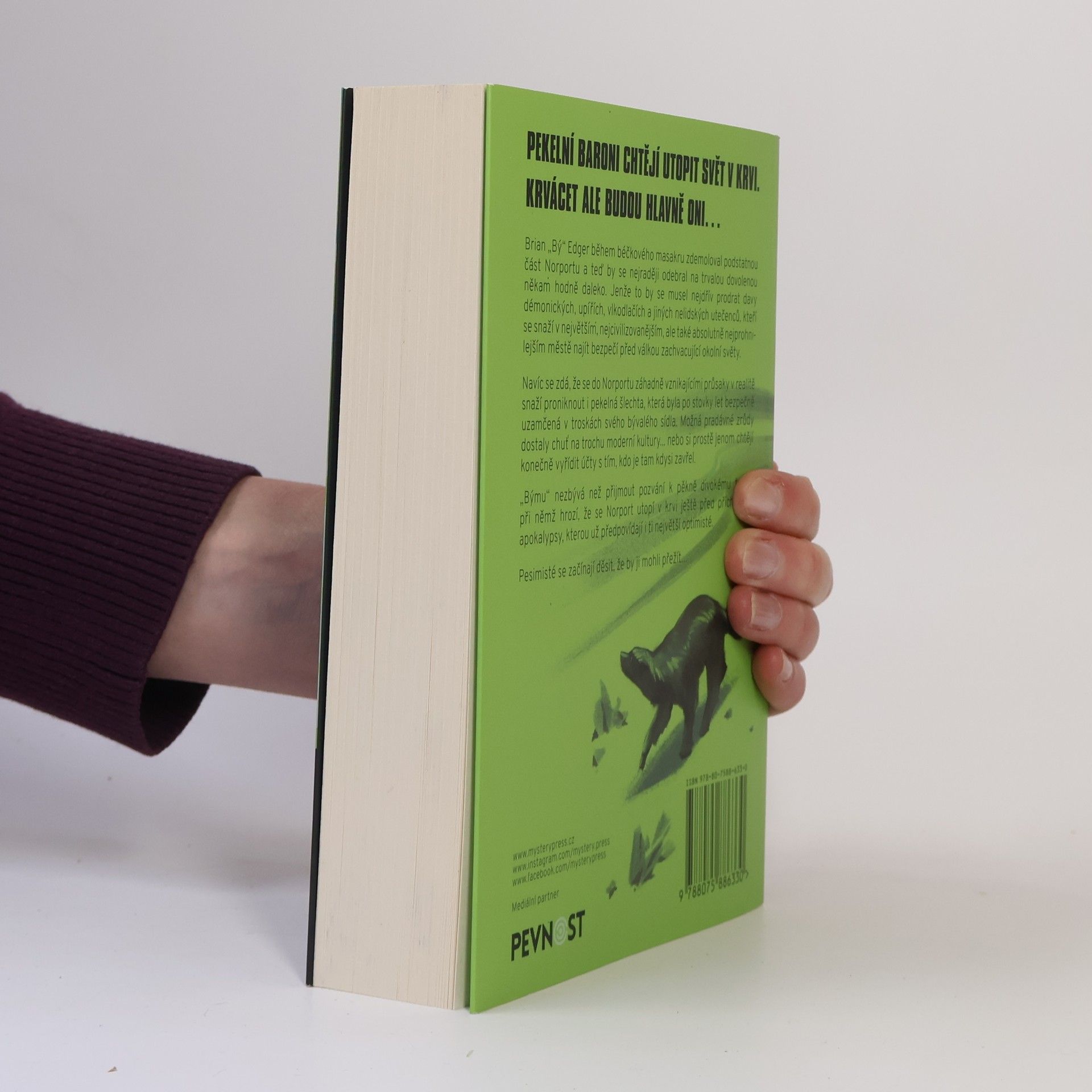PEKELNÍ BARONI CHTĚJÍ UTOPIT SVĚT V KRVI. KRVÁCET ALE BUDOU HLAVNĚ ONI… Brian „Bý“ Edger během béčkového masakru zdemoloval podstatnou část Norportu a teď by se nejraději odebral na trvalou dovolenou někam hodně daleko. Jenže to by se musel nejdřív prodrat davy démonických, upířích, vlkodlačích a jiných nelidských utečenců,kteří se snaží v největším, nejcivilizovanějším, ale také absolutně nejprohnilejším městě najít bezpečí před válkou zachvacující okolní světy. Navíc se zdá, že se do Norportu záhadně vznikajícími průsaky v realitě snaží proniknout i pekelná šlechta, která byla po stovky let bezpečně uzamčená v troskách svého bývalého sídla. Možná pradávné zrůdy dostaly chuť na trochu moderní kultury... nebo si prostě jenom chtějí konečně vyřídit účty s tím, kdo je tam kdysi zavřel. „Býmu“ nezbývá než přijmout pozvání k pěkně divokému tanci, při němž hrozí, že se Norport utopí v krvi ještě před příchodem apokalypsy, kterou už předpovídají i ti největší optimisté. Pesimisté se začínají děsit, že by ji mohli přežít…