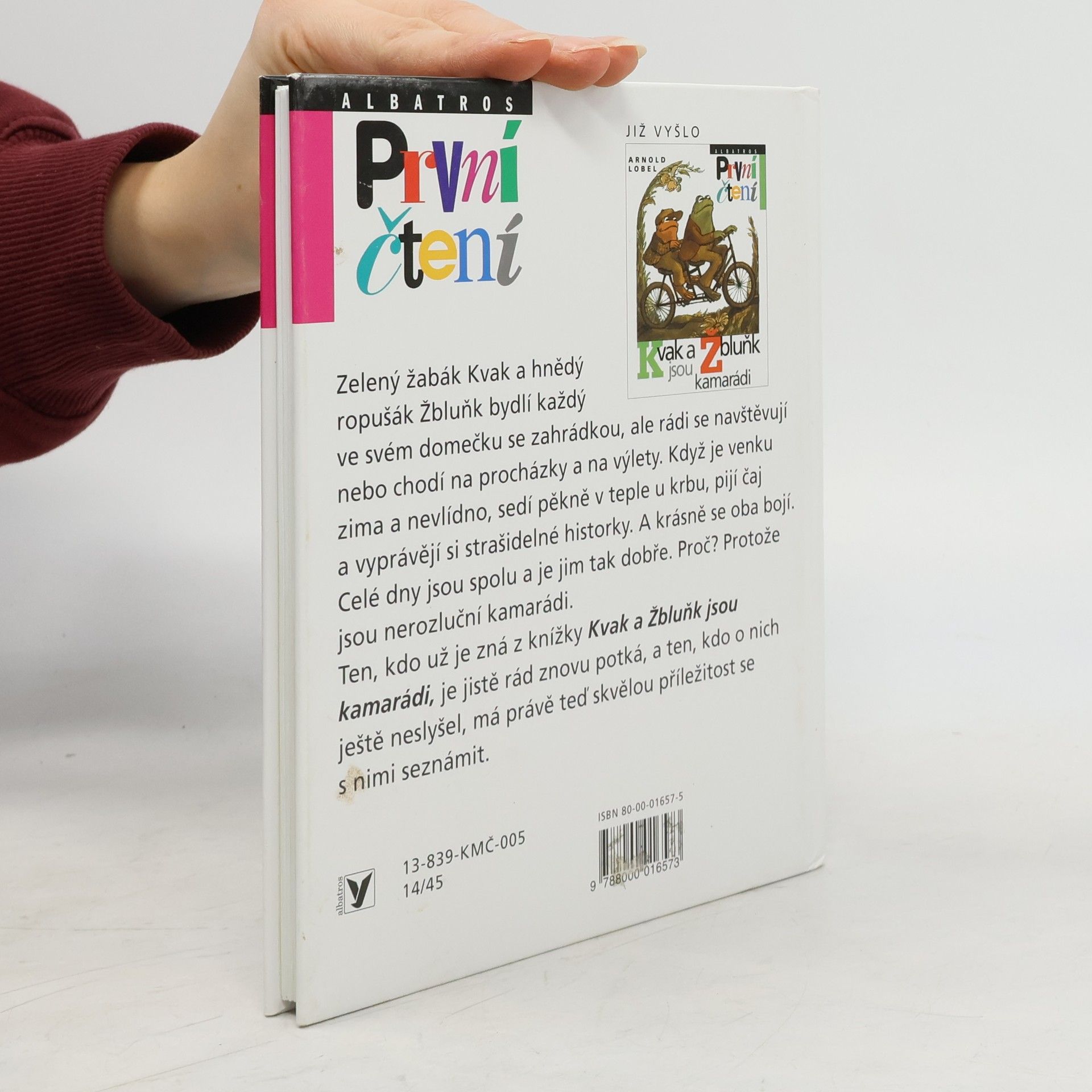 Zelený žabák Kvak a hnědý ropušák Žbluňk bydlí každý ve svém domečku se zahrádkou, ale rádi se navštěvují nebo chodí na procházky a na výlety. Když je venku zima a nevlídno, sedí pěkně v teple u krbu, pijí čaj a vyprávějí si strašidelné historky. A krásně se oba bojí. Celé dny jsou spolu a je jim tak moc dobře. Proč? Protože jsou nerozluční kamarádi. Ten, kdo už je zná z knížek Kvak a Žbluňk jsou kamarádi či Kvak a Žbluňk od jara do Vánoc, je jistě rád znovu potká, a ten, kdo o nich ještě neslyšel, má právě teď příležitost se s nimi seznámit. A protože má knížka velká písmena, snadno ji přelouská každý začínající čtenář. S Kvakem a Žbluňkem se písmenek nikdo bát nemusí!