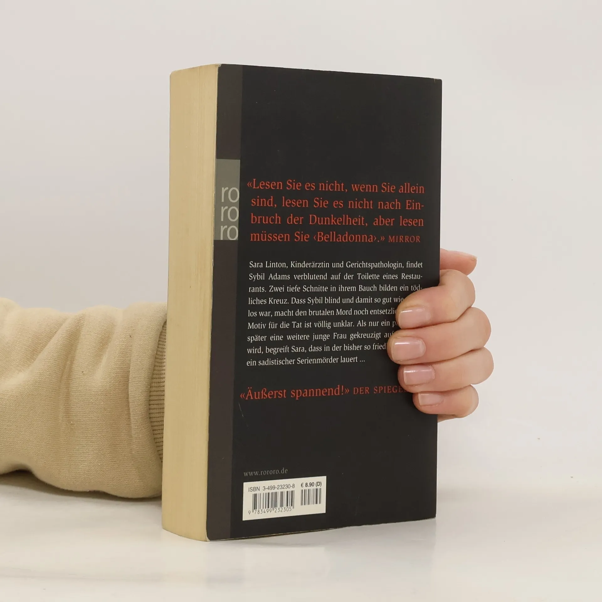 «Lesen Sie es nicht, wenn Sie allein sind, lesen Sie es nicht nach Einbruch der Dunkelheit, aber lesen müssen Sie ‹Belladonna›.» (Mirror)Sara Linton, Kinderärztin und Gerichtspathologin, findet Sybil Adams verblutend auf der Toilette eines Restaurants. Zwei tiefe Schnitte in ihrem Bauch bilden ein tödliches Kreuz. Dass Sybil blind und damit so gut wie wehrlos war, macht den brutalen Mord noch entsetzlicher. Das Motiv für die Tat ist völlig unklar. Als nur ein paar Tage später eine weitere junge Frau gekreuzigt aufgefunden wird, begreift Sara, dass in der bisher so friedlichen Stadt ein sadistischer Serienmörder lauert...«Äußerst spannend!» DER SPIEGEL
