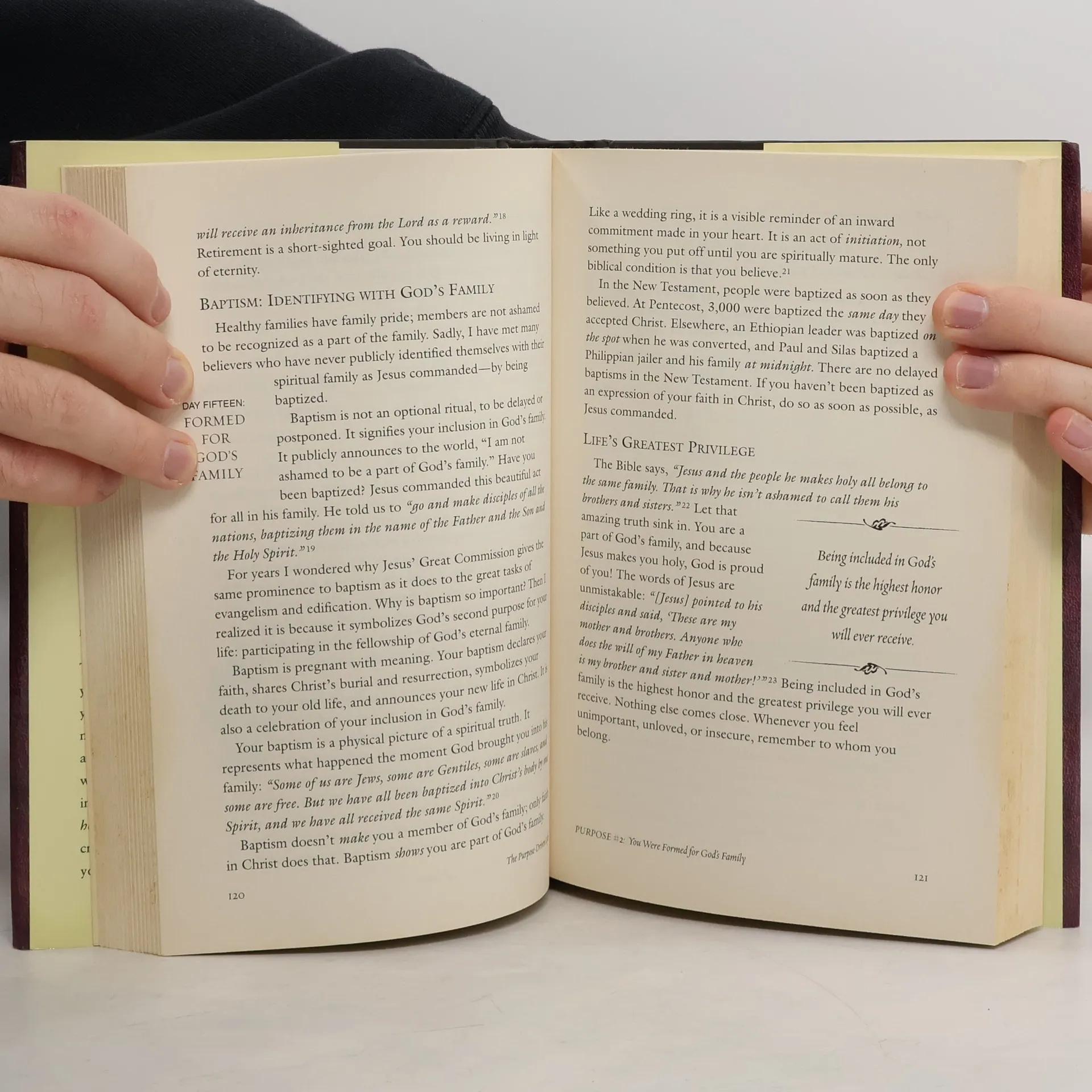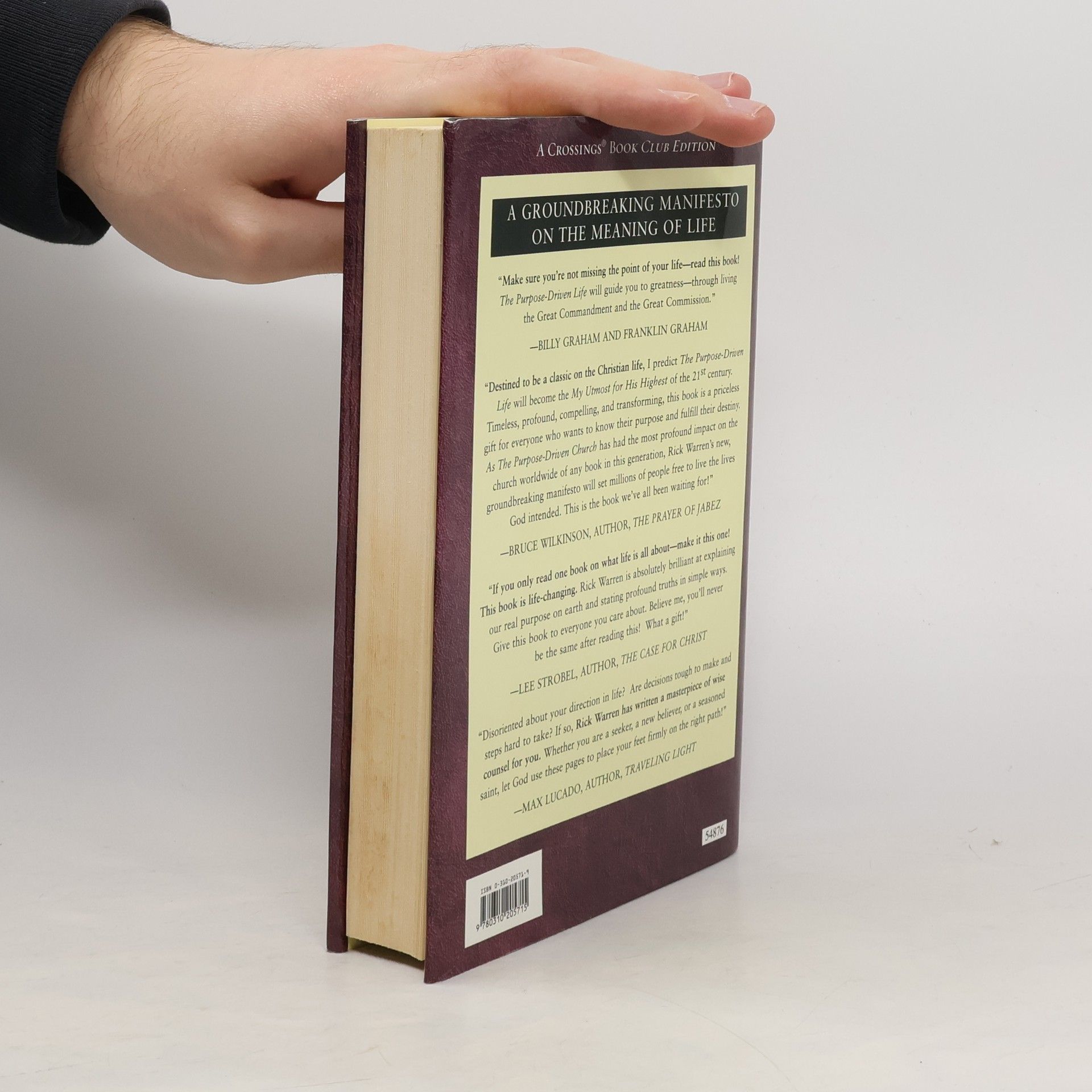 A #1 New York Times bestseller, The Purpose Driven Life will help you understand why you are alive and reveal Gods amazing plan for you both here and now, and for eternity. Rick Warren will guide you through a personal forty-day spiritual journey that will transform your answer to life's most important question: What on earth am I here for? Knowing Gods purpose for creating you will reduce your stress, focus your energy, simplify your decisions, give meaning to your life, and most important, prepare you for eternity. Movie stars and political leaders aren't the only ones turning to Rick Warren for spiritual guidance. Millions of people from NBA and LPGA players to corporate executives to high school students to prison inmates meet regularly to discuss The Purpose Driven Life.