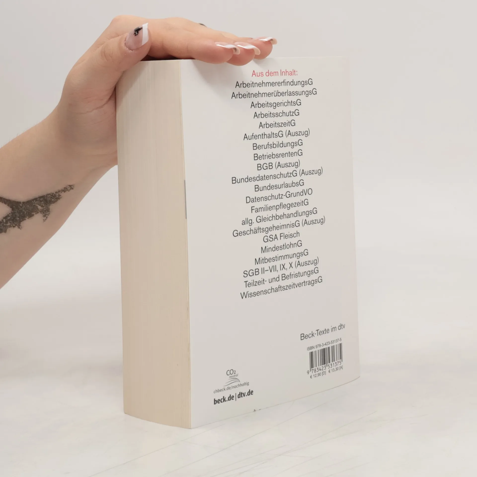 Die Textsammlung umfasst eine Vielzahl von Gesetzen und Verordnungen, die für das Arbeitsrecht und verwandte Bereiche relevant sind. Dazu zählen unter anderem das Allgemeine Gleichbehandlungsgesetz, das Arbeitnehmerüberlassungsgesetz, das Arbeitszeitgesetz sowie das Mutterschutzgesetz. Auch spezifische Regelungen wie das Gesetz über befristete Arbeitsverträge mit Ärzten in der Weiterbildung und das Gesetz zur Bekämpfung von Schwarzarbeit sind enthalten. Die Sammlung berücksichtigt zudem wichtige Aspekte wie Datenschutz, Tarifvertragsrecht und Mitbestimmung. Die Neuauflage bringt die Inhalte auf den Stand vom 1. Januar 2022 und beinhaltet wesentliche Änderungen, die durch die pandemiebedingte Corona-Gesetzgebung, die angepasste Wahlordnung zum Betriebsverfassungsgesetz und das Infektionsschutzgesetz bedingt sind. Diese umfassende Sammlung richtet sich an Arbeitgeber, Arbeitnehmer, Betriebsräte, Gewerkschaften sowie Studierende und Auszubildende, die sich über die aktuellen rechtlichen Rahmenbedingungen informieren möchten.