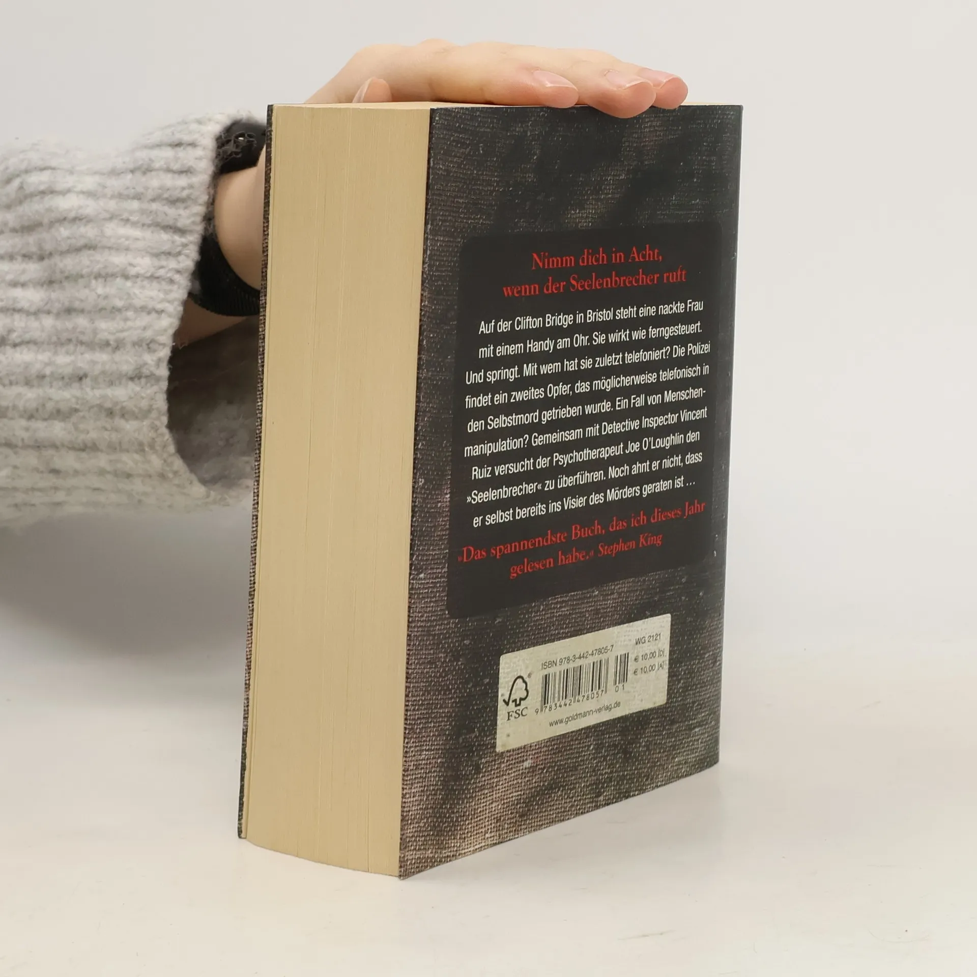 Dein Wille geschehe, mein Tod komme! Der renommierte Psychotherapeut Joe O’Loughlin wird zu einem erschreckenden Vorfall gerufen: Im strömenden Regen steht eine Frau nackt auf der Clifton Bridge in Bristol, High Heels an den Füßen und ein Handy am Ohr. Auf Joes beschwichtigende Worte reagiert sie nicht, sondern springt direkt in den Tod – ferngesteuert und willenlos. Der erfahrene Psychologe Joe steht vor einem Rätsel. Wurde die Frau tatsächlich von ihrem Anrufer in den Selbstmord getrieben? Als wenige Tage später die Geschäftspartnerin der Toten erfroren aufgefunden wird, an einen Baum gekettet, unbekleidet und mit einem Handy zu ihren Füßen, hat Joe Gewissheit: Hier ist ein gefährlicher Psychopath am Werk, ein Experte für Menschenmanipulation, der die Seele seiner Opfer bricht. Weil der mysteriöse Unbekannte jedoch keine Spuren hinterlässt, bleibt Joe nur eines: Er muss seinen Freund und Vertrauten, den pensionierten Detective Vincent Ruiz um Hilfe bitten. Noch kann Joe nicht ahnen, dass er selbst ins Visier des Täters geraten ist …