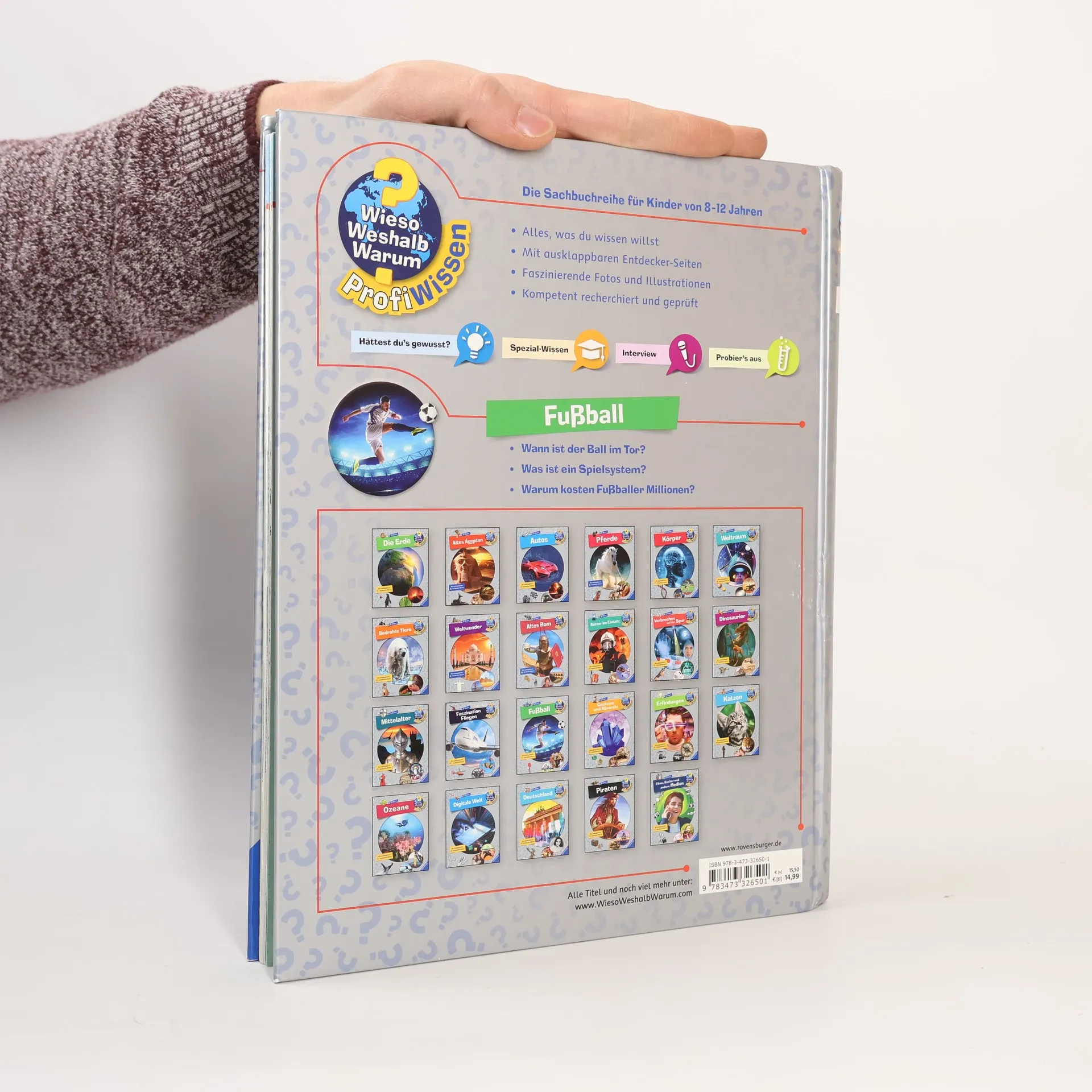 Anpfiff zum Lesen! Dieses Buch ist ein Muss für Fußballfans. Es beantwortet Fragen zur Beliebtheit des Sports, den wichtigen Rollen auf dem Fußballfeld und den Aufgaben von Green Keepers, Schiedsrichtern und Trainern. Spannende Sachtexte, anschauliche Illustrationen und Fotos aus verschiedenen Spiel- und Trainingssituationen vermitteln alles Wissenswerte rund um Fußball. Interviews mit echten Fußball-Promis bieten einen faszinierenden Einblick hinter die Kulissen. Die Sachbuchreihe für Kinder von 8–12 Jahren lädt zum Eintauchen in Lieblingsthemen ein: Wann lebten die Dinos? Wie sieht es unter der Motorhaube eines Rennwagens aus? Was passiert im Weltall? Wer genau wissen möchte, ist hier richtig. Mit modernem Design, starken Bildern, verblüffenden Fakten und einer großen Portion Extra-Wissen! Die Texte sind lebendig und verständlich. Witzige Comics lockern die Seiten auf, während Experten in Interviews ihre Einblicke teilen. Spezial-Wissen-Kästen bieten tiefere Einblicke. Hier wird nicht nur gelesen, sondern auch ausprobiert: mit vielen Anleitungen für Experimente. Ausklappbare Entdeckerseiten in jedem Band bieten zusätzliches Staunen und Entdecken. Ein unterhaltsamer Begleiter durch verschiedene Wissenswelten.