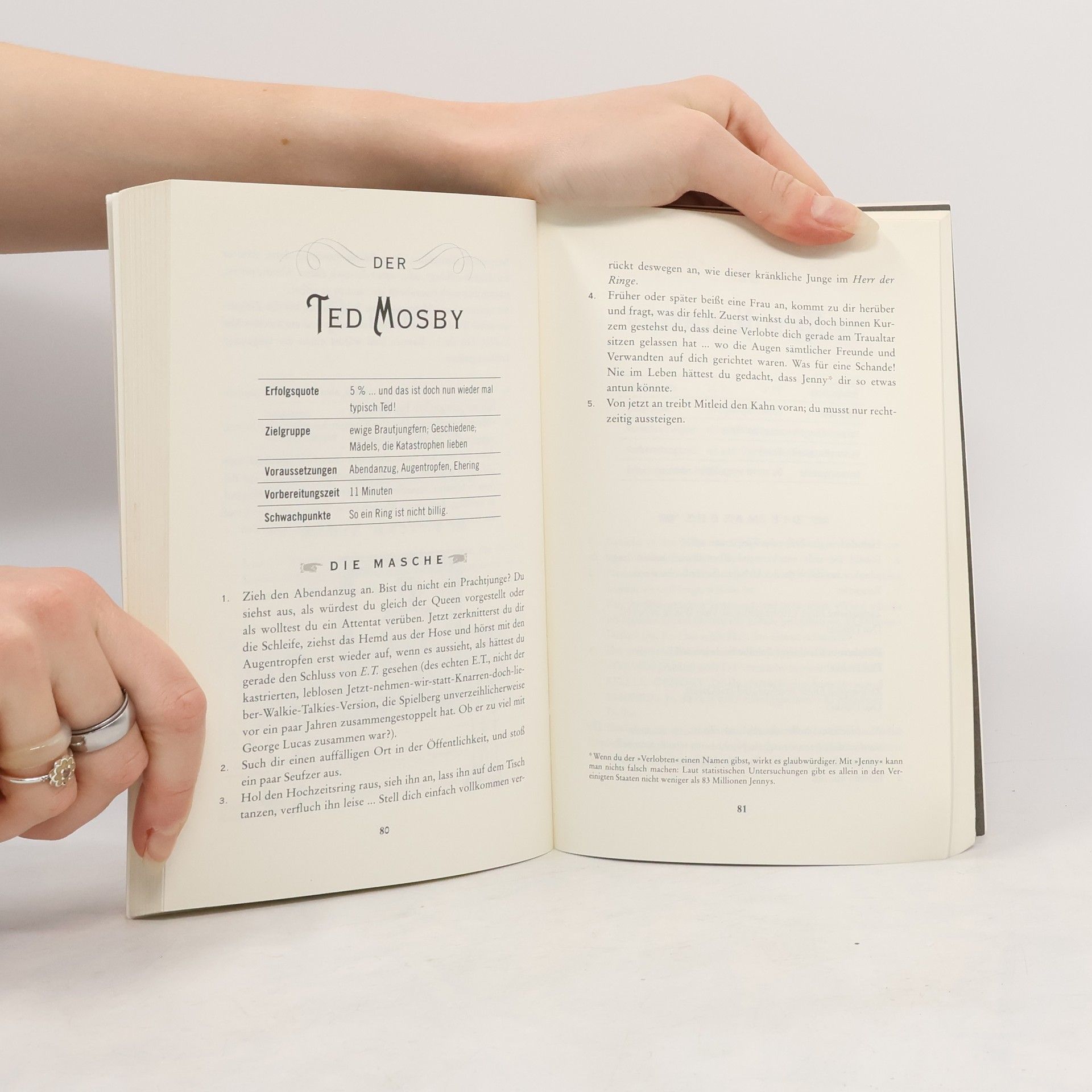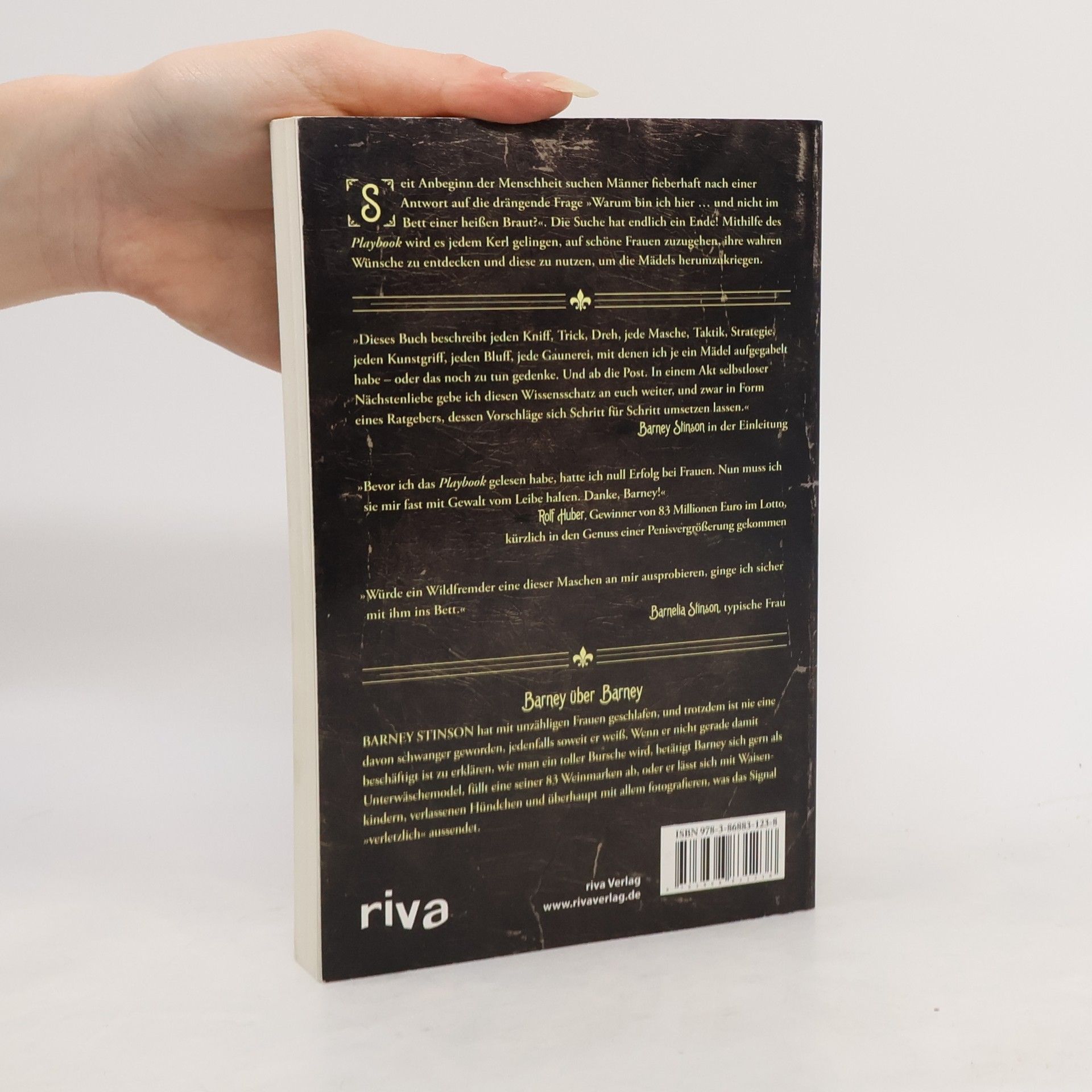 Barney Stinson, Held der erfolgreichen Fernsehserie „How I met your mother“, kriegt die Mädels mit kleinen Kniffen reihenweise rum. Nun verrät er in einem Buch alle seine Tricks, die garantiert zum Erfolg führen, auch bei Jungs, die im Umgang mit anderen Menschen – und vor allem anderen Frauen - wenig Geschick ha-ben. In „Das Playbook“ beschreibt Barney Stinson mehr als 75 Methoden, mit denen sich garantiert jede Frau anbaggern lässt. Hier erfährt der Leser alles über Barneys tolle Maschen: den SNASA-Trick („Nein, nicht für die NASA, ich arbeite für die Geheimabteilung – die Secret NASA.“) oder den Cheap Trick-Trick („Yo, ich bin der Bassist von Cheap Trick“, denn Frauen sind begeistert, wenn ein Mann in einer Band spielt, egal in was für einer). Und das Schöne an seinen Strategien ist, dass die meisten dieser Schachzüge keine Erfahrung und auch keine Vorbereitung erfordern. Jeder kann sofort loslegen. „Das Playbook“ ist das ultimative Lebens-hilfebuch für alle Männer, die auf der Suche nach Frauen sind. Oder frei nach Barney Stinson: „Also, werft euch in Schale, macht euch bereit und lernt . . . wie man der Größte wird. “