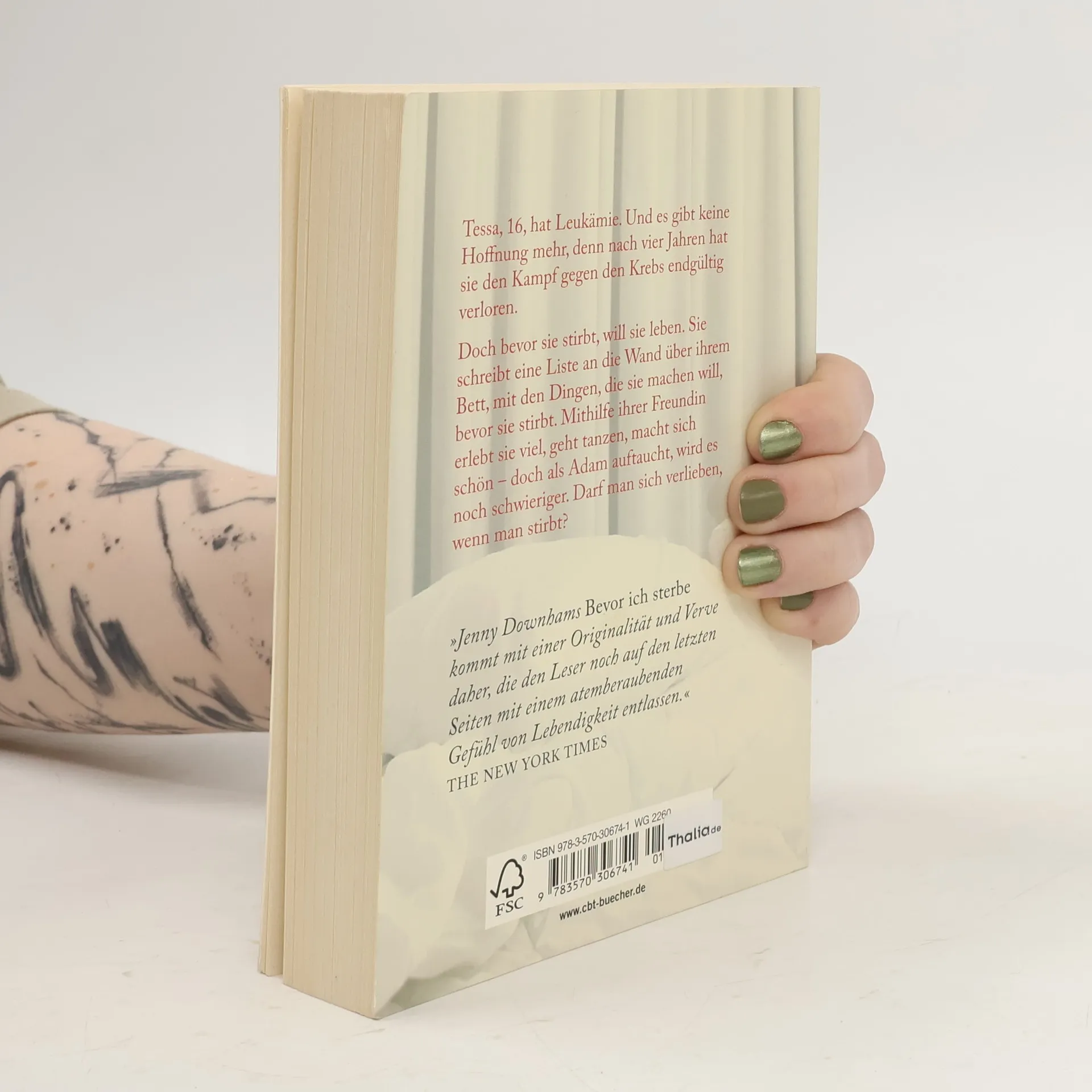 Ihr bleibt keine Zeit, aber die Liebe Die Ärzte machen der 16-jährigen Tessa wenig Hoffnung. Ihr Kampf gegen die Leukämie scheint nach vier Jahren verloren. Doch Tessa will nicht einfach verschwinden, sie will leben – wenigstens in der Zeit, die ihr noch bleibt. Sie schreibt eine Liste, was sie noch tun will, bevor sie stirbt: einen Tag nur ja sagen, Drogen nehmen, einen Tag lang berühmt sein, etwas Verbotenes tun, einmal Sex haben. Als Adam auftaucht, ist Sex plötzlich mehr als ein Punkt auf ihrer Liste. Doch darf man lieben, wenn man stirbt? Tessa erzählt die Geschichte ihres Todes – mit unglaublicher Courage, Ehrlichkeit und voller Hoffnung. Ihr glauben wir, dass Liebe selbst das Sterben verändert.