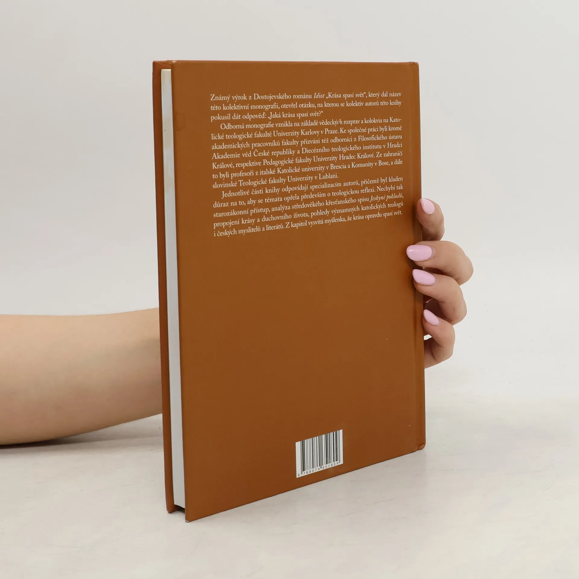 Známý výrok z Dostojevského románu Idiot „Krása spasí svět“, který dal název této kolektivní monografii, otevřel otázku, na kterou se kolektiv autorů této knihy pokusil dát odpověď: „Jaká krása spasí svět?“ Odborná monografie vznikla na základě vědeckých rozprav a kolokvia na Katolické teologické fakultě Univerzity Karlovy v Praze. Ke společné práci byli kromě akademických pracovníků fakulty přizváni též odborníci z Filosofického ústavu Akademie věd České republiky a Diecézního teologického institutu v Hradci Králové, respektive Pedagogické fakulty Univerzity Hradec Králové. Ze zahraničí to byli profesoři z italské Katolické univerzity v Brescia a Komunity v Bose, a dále slovinské Teologické fakulty Univerzity v Lublani. Jednotlivé části knihy odpovídají specializacím autorů, přičemž byl kladen důraz na to, aby se témata opřela především o teologickou reflexi. Nechybí tak starozákonní přístup, analýza středověkého křesťanského spisu Jeskyně pokladů, propojení krásy a duchovního života, pohledy významných katolických teologů i českých myslitelů a literátů. Z kapitol vysvítá myšlenka, že krása opravdu spasí svět.