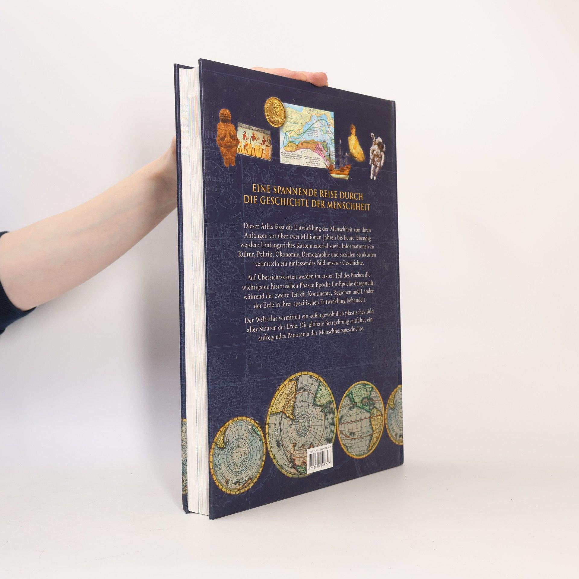 Eine spannende, 20.000 Jahre umfassende Reise durch die Geschichte - von den ersten Menschen bis zum Beginn des dritten Jahrtausends. Farbige Griffleisten erleichtern die Orientierung im Atlas. Sie vernetzen die Epochengeschichte des ersten Teils mit der Betrachtung der einzelnen Kontinente im zweiten Teil. Zeitleisten stellen zudem jedes Ereignis in seinen historischen Kontext. Die zahlreichen Karten wurden mit modernster digitaler Technik erstellt, so dass die Erde aus jeder gewünschten Perspektive betrachtet werden kann. Historische Ereignisse werden so auf völlig neuartige Weise dargestellt.