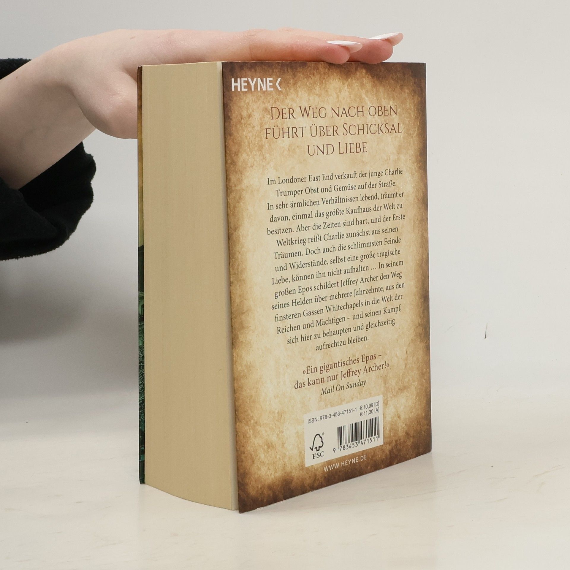 Im Londoner East End verkauft der junge Charlie Trumper Obst und Gemüse auf der Straße. In sehr ärmlichen Verhältnissen lebend, träumt er davon, einmal das größte Kaufhaus der Welt zu besitzen. Aber die Zeiten sind hart, und der Erste Weltkrieg reißt Charlie zunächst aus seinen Träumen. Doch auch die schlimmsten Feinde und Widerstände, selbst eine große tragische Liebe können ihn nicht aufhalten … In seinem großen Epos schildert Jeffrey Archer den Weg seines Helden über mehrere Jahrzehnte, aus den finsteren Gassen Whitechapels in die Welt der Reichen und Mächtigen - und seinen Kampf, sich hier zu behaupten und gleichzeitig aufrecht zu bleiben.Das Buch erschien in Deutschland bereits unter dem Titel »Der Aufstieg«.