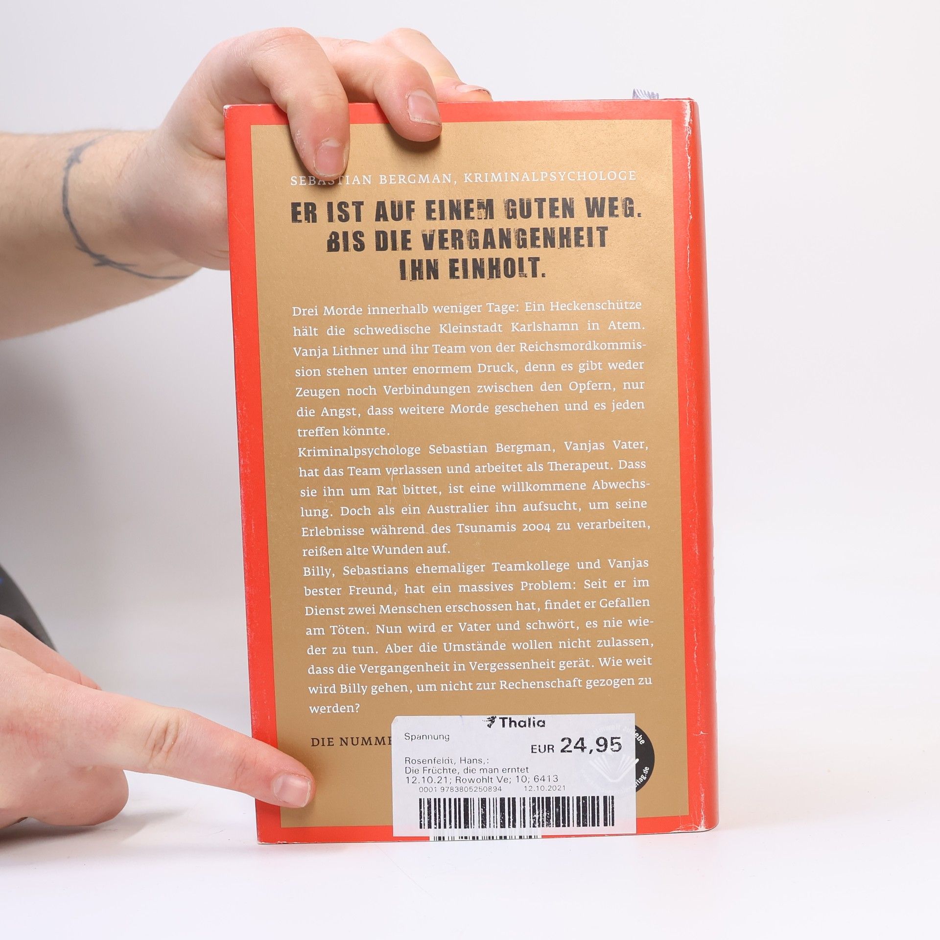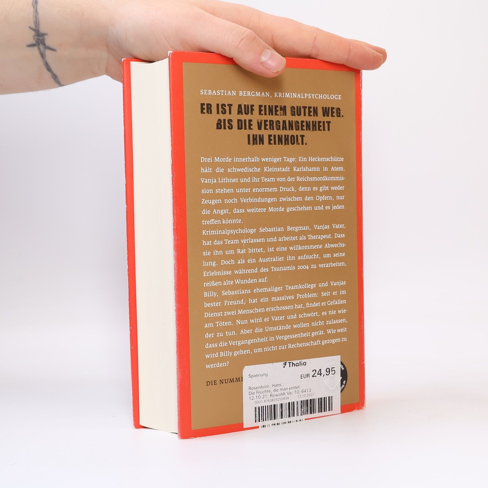 Drei Morde innerhalb weniger Tage: Die beschauliche schwedische Kleinstadt Karlshamn wird vom Terror erfasst. Vanja Lithner und ihre Kollegen von der Reichsmordkommission stehen unter Druck, den Heckenschützen zu stoppen, bevor weitere Menschen ums Leben kommen. Aber es gibt keine Hinweise, keine Zeugen und keine eindeutigen Verbindungen zwischen den Opfern.Sebastian Bergman hat sich für ein ruhigeres Leben entschieden, seit er Großvater geworden ist. Er arbeitet als Psychologe und Therapeut. Doch plötzlich wird seine Welt auf den Kopf gestellt, als ein Australier ihn aufsucht, um seine Erlebnisse während des Tsunamis 2004 zu verarbeiten. Bei dem Sebastian selbst Frau und Tochter verlor.Seit Sebastians ehemaliger Kollege Billy das erste Mal getötet hat, kann er nicht aufhören. Nun wird er Vater und beschließt, nie wieder zu morden. Aber die Umstände wollen nicht zulassen, dass die Vergangenheit in Vergessenheit gerät. Wie weit wird Billy gehen, um nicht zur Rechenschaft gezogen zu werden?