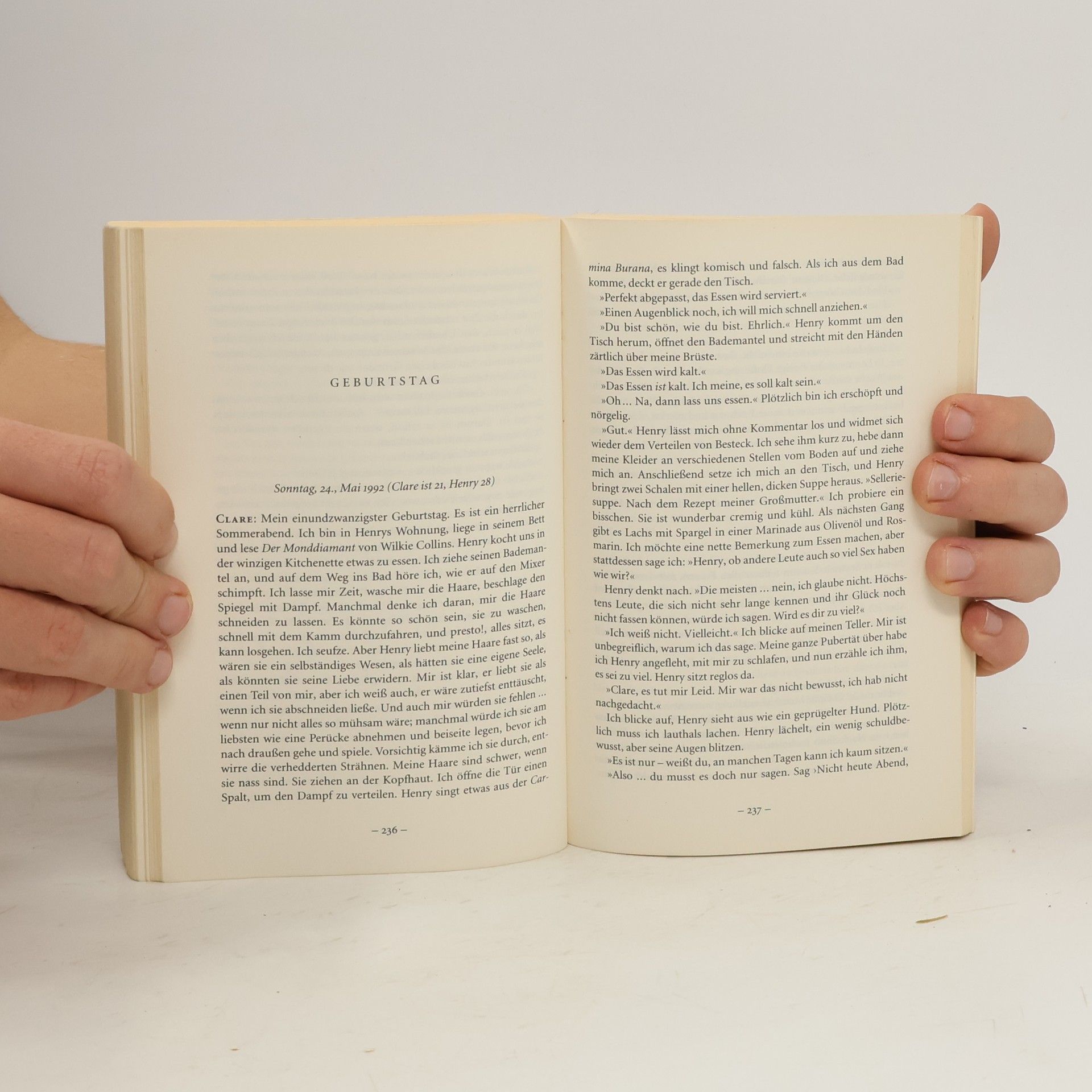 Clare fällt aus allen Himmeln, jedes Mal aufs Neue, wenn Henry vor ihr steht. Denn Henry ist ein Zeitreisender. Plötzlich und unerwartet stürzt er los in eine andere Zeit, aber immer wieder landet er bei Clare, Clare als Kind, als Geliebte und Mutter der gemeinsamen Tochter Alba, Clare als alte Frau, aber da ist er schon lange tot. Seine Zeitreisen sind das Geheimnis, das die Liebenden mit jeder Trennung noch inniger vereint. Audrey Niffenegger ist es gelungen, über die Schönheit der Dauer und das Staunen der Sehnsucht zu schreiben, von der Liebe wie zum ersten Mal zu erzählen. Ein Roman zum Verlieben.