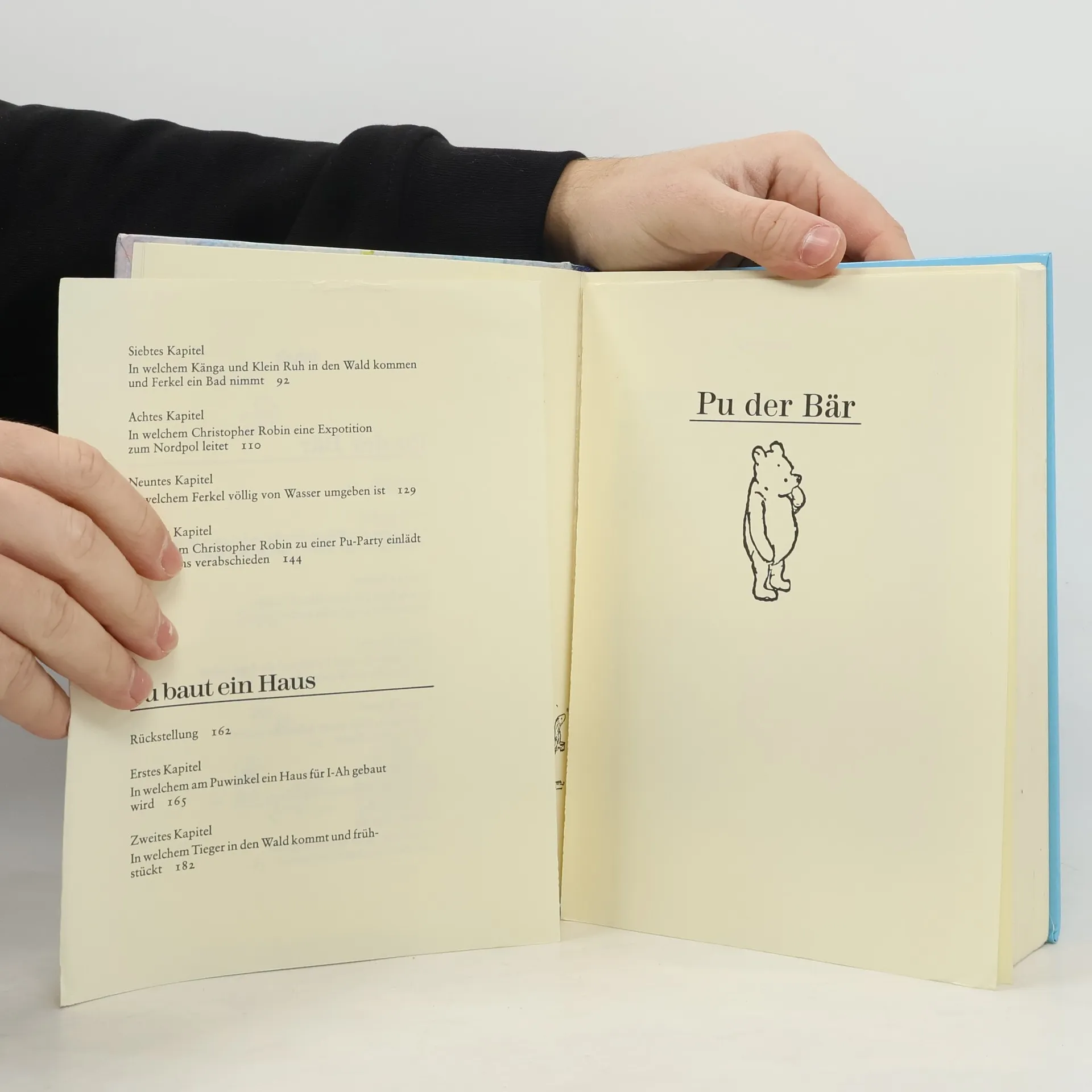 „Pu pu!“, sagte A. A. Milnes einjähriger Sohn Christopher Robin, als er zu Weihnachten seinen neuen Teddy auf dem Kamin sitzen sah. So entstand 1921 der Name für die wohl berühmteste Teddy-Bären-Geschichte der Welt: PU DER BÄR. Die Abenteuer, die Christopher Robin mit Pu und seinen Freunden erlebte, hat Milne später aufgeschrieben und veröffentlicht. Keine Frage, dass ihm die Pu-Fans allüberall dafür zutiefst dankbar sind. So ist nichts verloren gegangen von den fürchterlich aufregenden Erlebnissen mit Pu, dem liebenswerten Bären von geringem Verstand, mit dem etwas ängstlichen Ferkel, dem griesgrämigen Esel I-Ah und allen anderen hochwichtigen Persönlichkeiten aus dem Hundertsechzig-Morgen-Wald. Zum Beispiel die Geschichte damals, als Pu honiglüstern mit einem blauen Ballon hoch oben in die Baumkrone fliegen wollte und dabei versuchte - ein Bienentäuschungsmanöver! - wie eine kleine schwarze Wolke auszusehen.