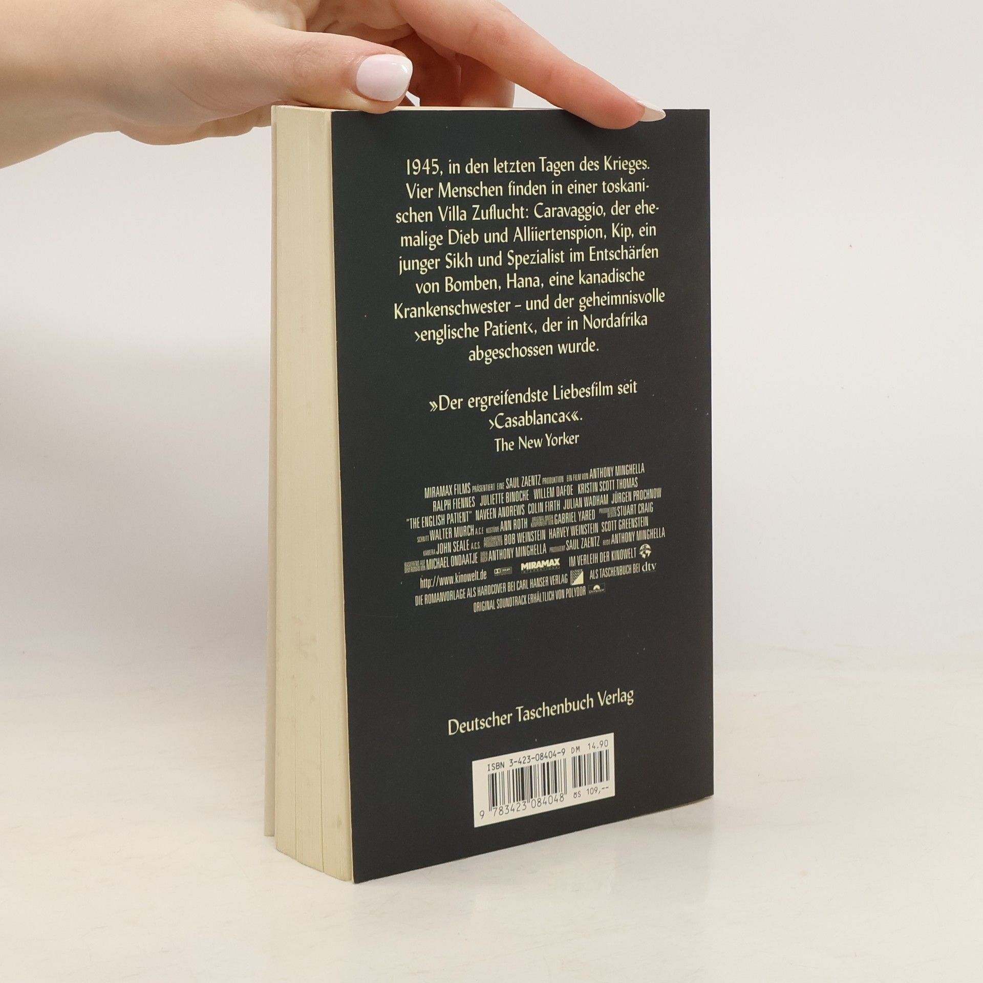Die Lektüre von Michael Ondaatjes Werk ist ebenso lohnenswert wie der Kinofilm. Der Roman erzählt von vier Personen, die 1945 in einer zerbombten Villa in der Toskana gestrandet sind und versuchen, ihr Leben neu zu ordnen. Hana, eine kanadische Krankenschwester, kümmert sich um einen schwer verbrannten Mann, der in der Wüste mit seinem Flugzeug abgestürzt ist. Sie liest ihm aus Rudyard Kipling und Stendhal vor, während sie ihn pflegt. Caravaggio, ein ehemaliger Dieb, der im Krieg verletzt wurde, sucht Hana auf, um sie zu beschützen, da sie sich aus früheren Zeiten kennen. Kip, ein indischer Bombenentschärfer, gesellt sich zu ihnen, kämpft mit den Schrecken des Krieges und kehrt schließlich in seine Heimat zurück. Jeder Charakter trägt die Narben des Krieges und findet in der Villa einen Ort der Zuflucht. Ondaatje nutzt Rückblenden und Traumsequenzen, um die erlittenen Wunden zu schildern, ohne jedoch den Leser mit einem unzusammenhängenden Puzzle zu überfordern. Die Erzählungen des „englischen Patienten“ sind poetisch und eindringlich, besonders die Beschreibungen der Wüste und ihrer Nomaden. Der Roman fordert den Leser zur Konzentration auf, um seine Poesie zu entfalten. Es ist ein kunstvolles Werk, das in sanften Pastelltönen und verschwommenen Konturen erstrahlt, und für Fans von Ondaatje ist die Verbindung zu „In der Haut eines Löwen“ ein weiterer Anreiz.